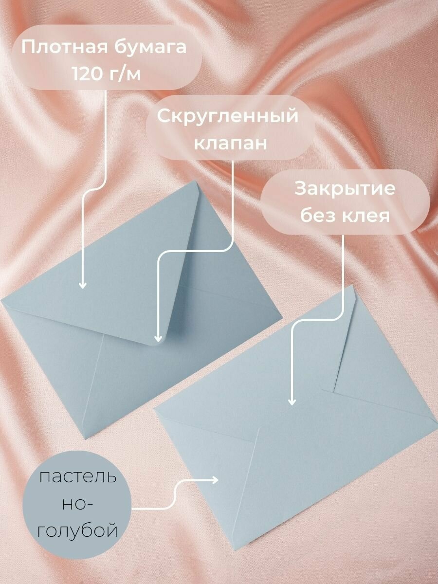 Купить Пастельно голубые конверты бумажные для пригласительных, С6 114х162мм - набор 10 шт. цветные