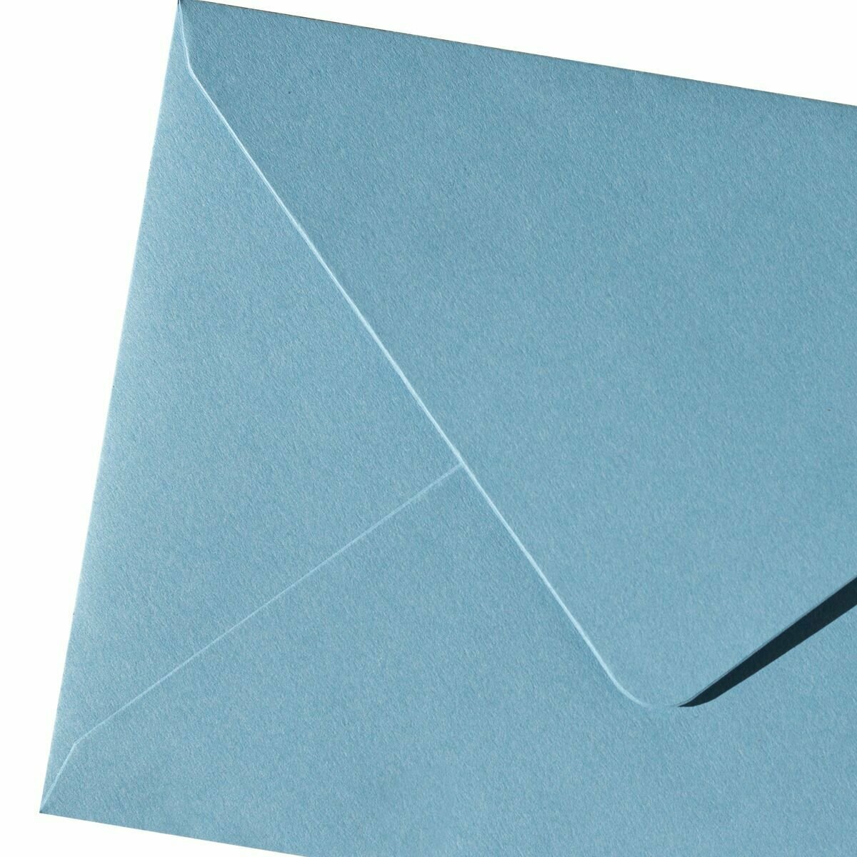 Пастельно голубые конверты бумажные для пригласительных, С6 114х162мм - набор 10 шт. цветные