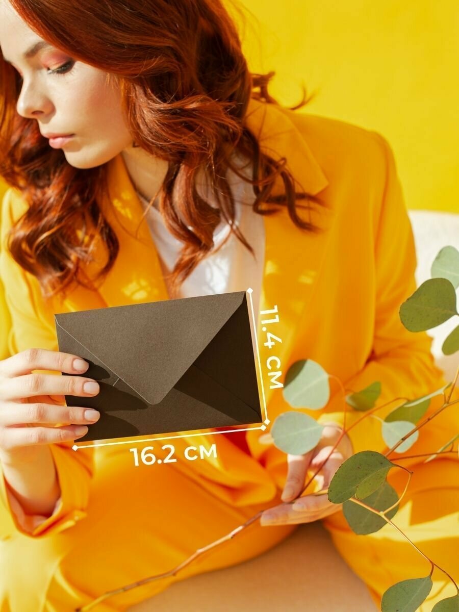 Черные конверты бумажные для пригласительных, С6 114х162мм - набор 10 шт. цветные