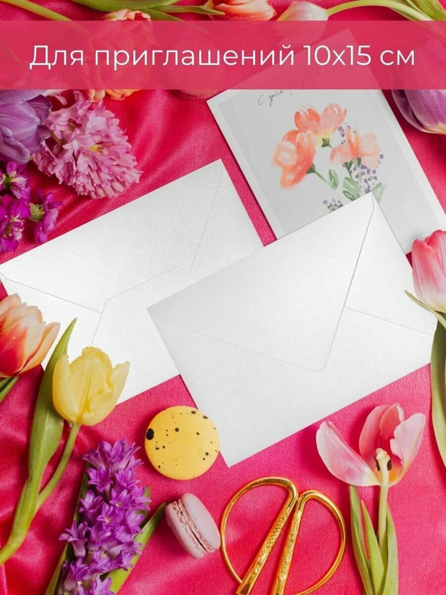 Перламутровые конверты бумажные для пригласительных на свадьбу, С6 114х162мм - набор 10 шт. цветные