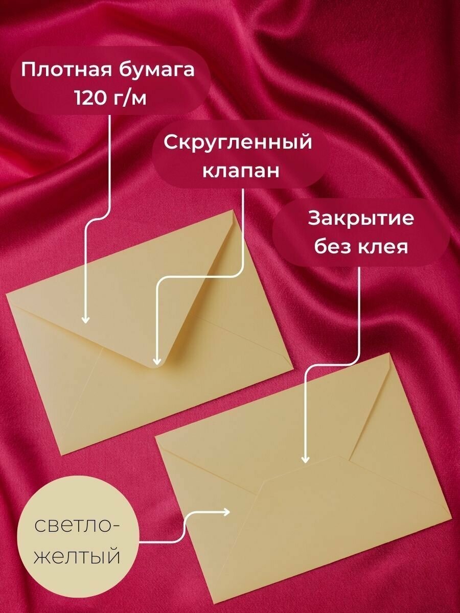 СохранитьСветло-желтые конверты бумажные для пригласительных, С6 114х162мм - набор 10 шт. цветные интересное: