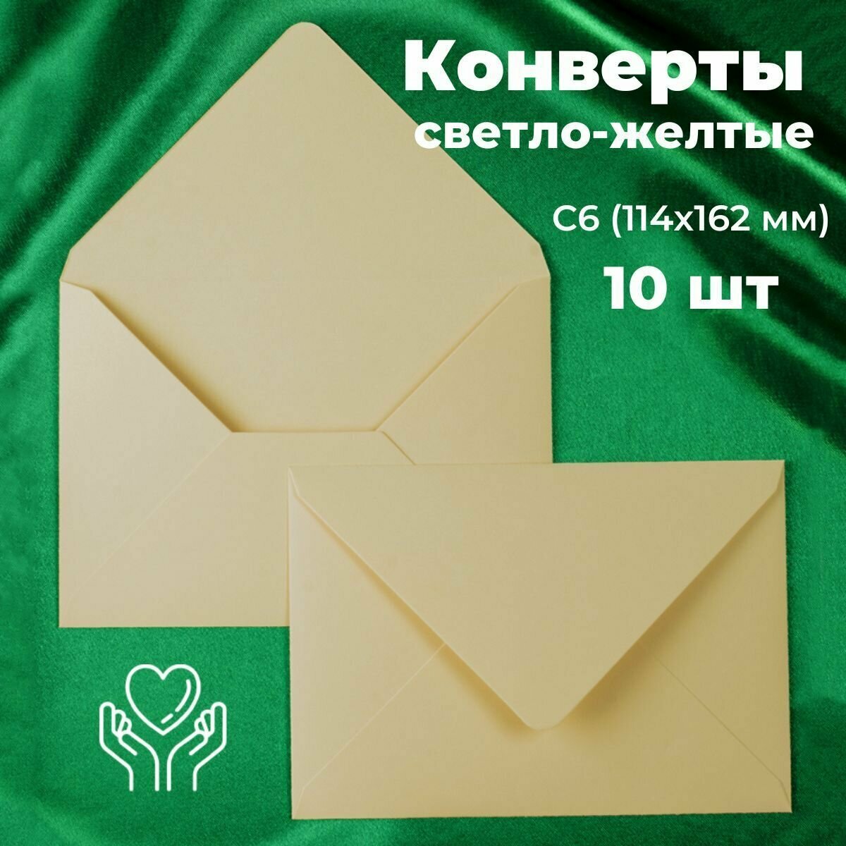 Купить Светло-желтые конверты бумажные для пригласительных, С6 114х162мм - набор 10 шт. цветные