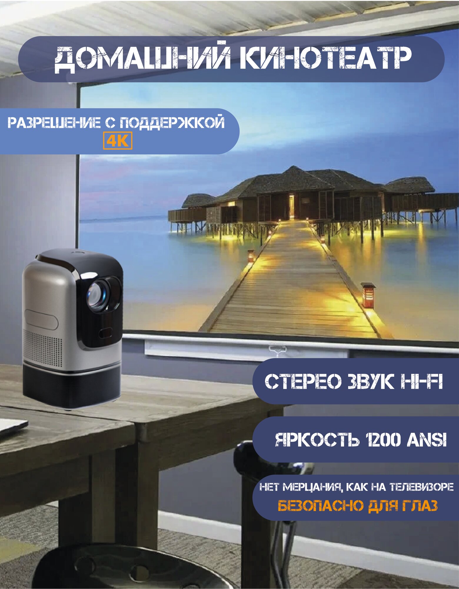 Smart Проектор для фильмов/Видеопроектор/Проектор для дома и офиса (Android 11, 1200 люмен, 2+32Gb, стереозвук, Full HD, Wi-Fi, Bluetooth) интересное: