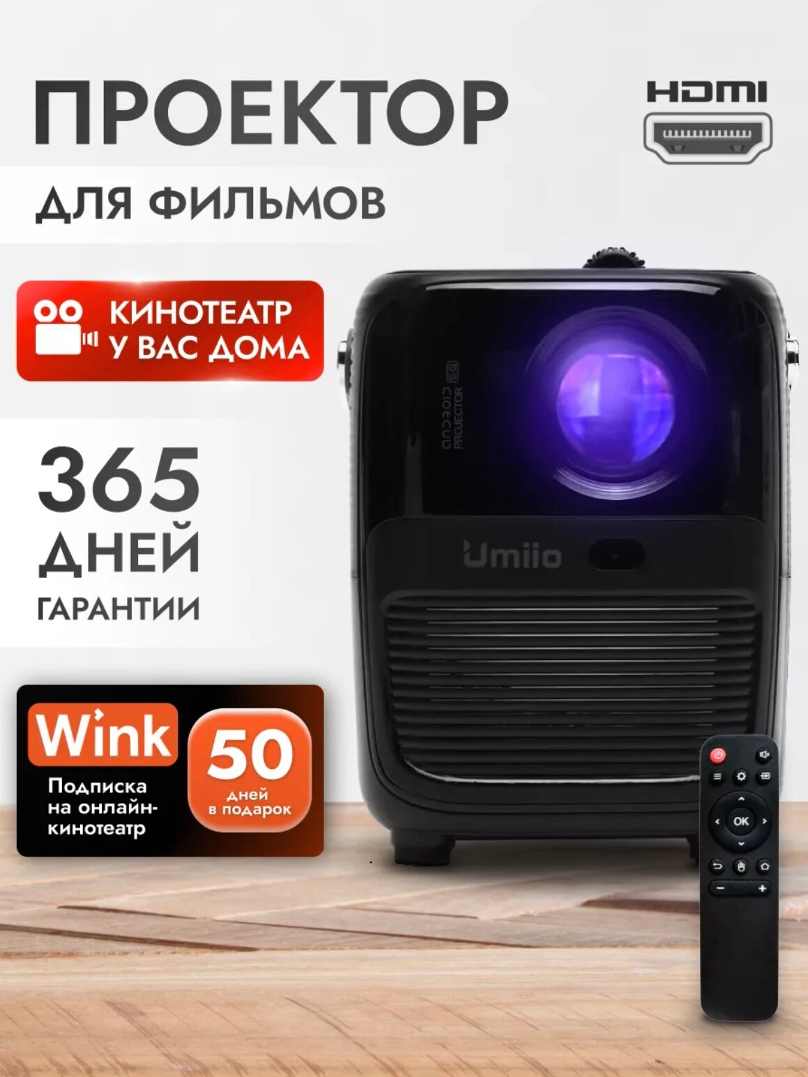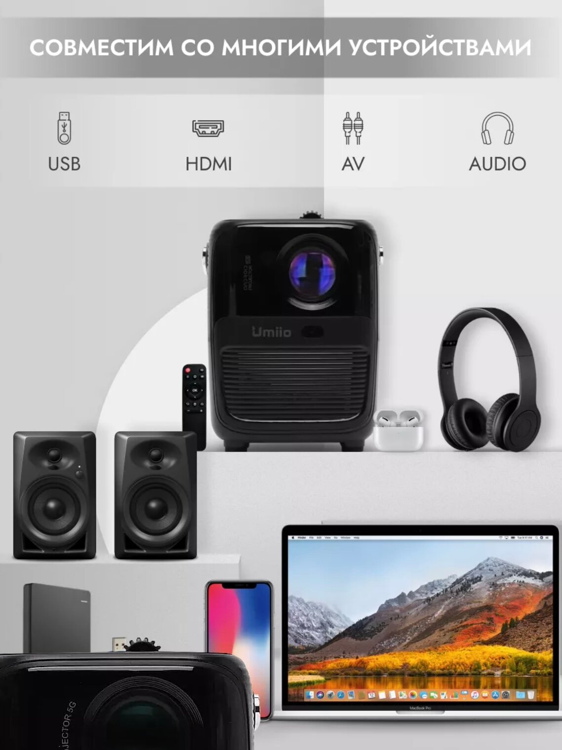 Проектор Umiio Q2 для фильмов мини проектор домашний с HDMI / Чёрный интересное: