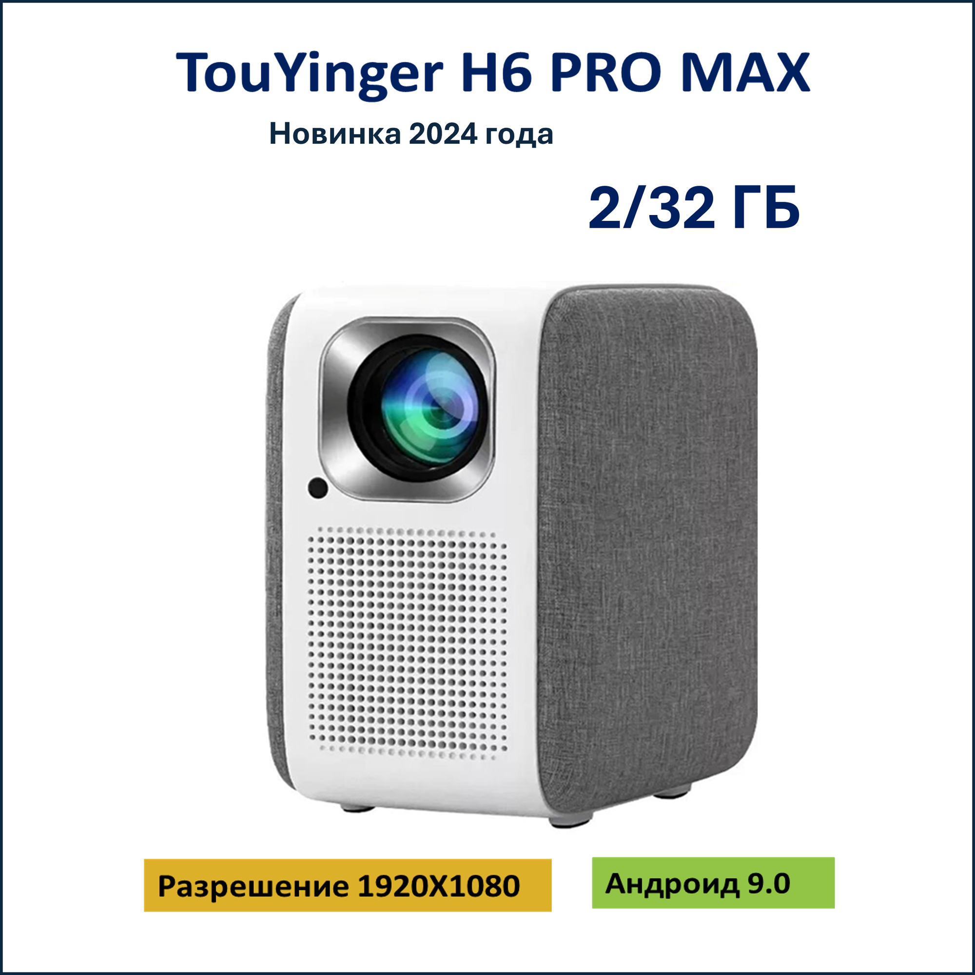 Купить Видеопроектор Touyinger H6 Pro Max ( версия 2024 года) со встроенным Андроид 9.0 и памятью 2/32 Gb, 6500 люменов, поддержка 4К