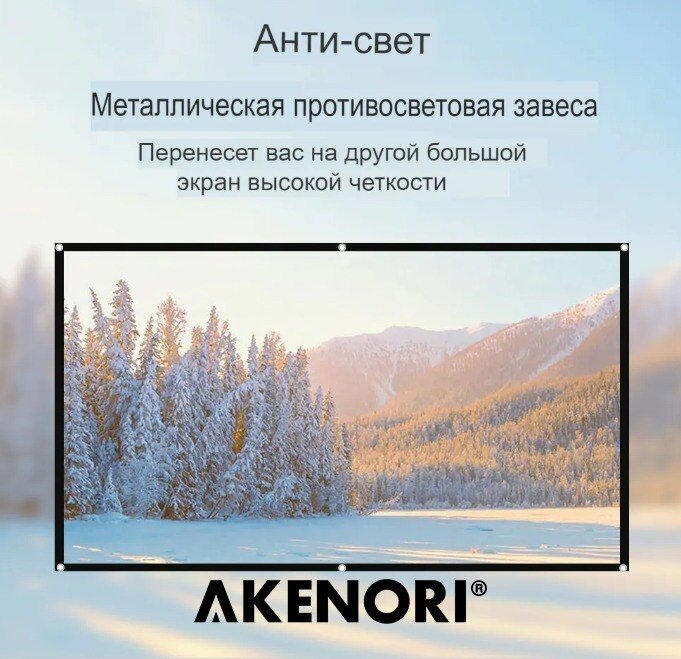 Экран для проектора светоотражающий серый Akenori 003D 100 дюймов 16:9 " липучки+пакет