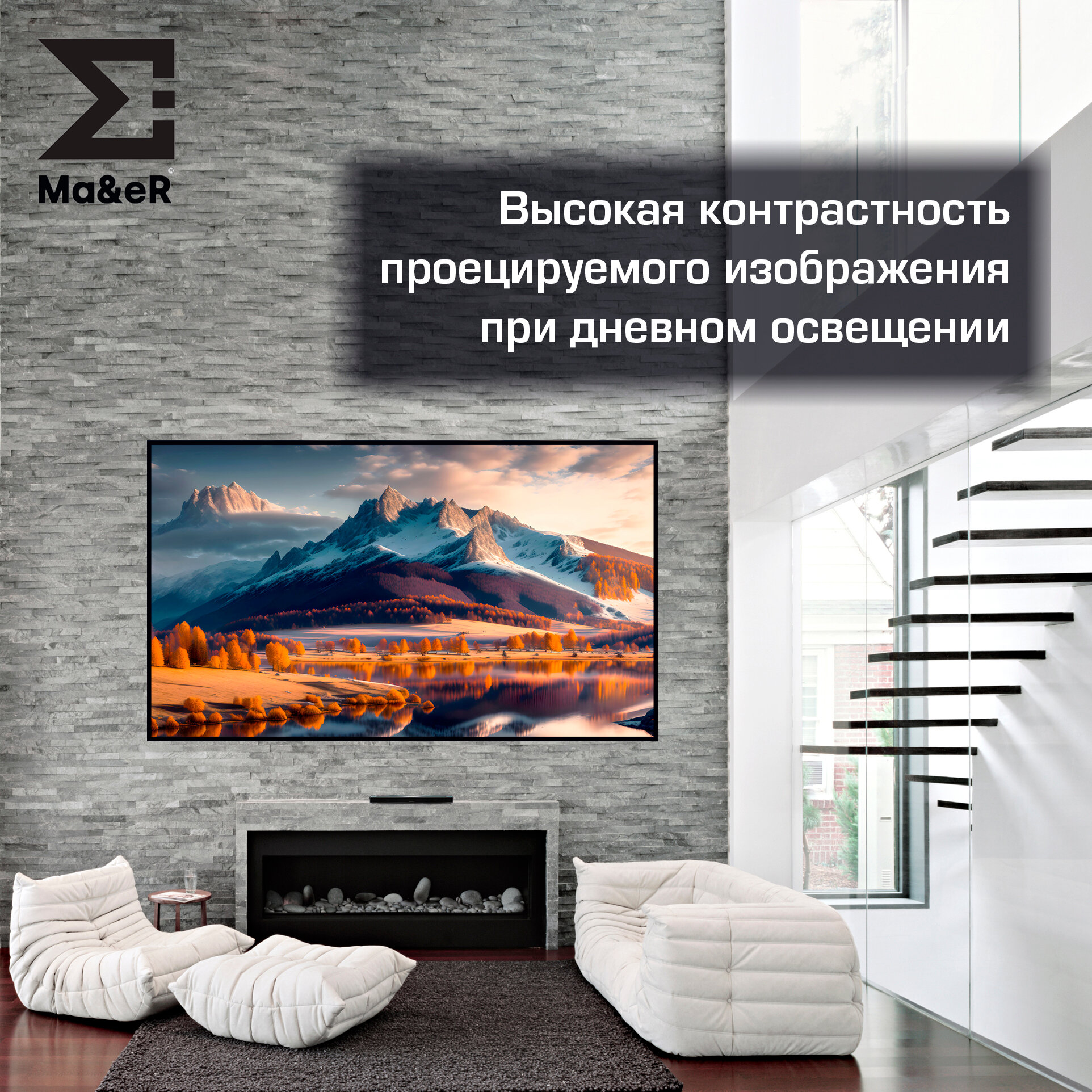 | Материал полотна | UST CLR / ALR, (ultra short throw (ust) Ambient Light Rejecting (ALR) с усилением 0,9 - многослойная ПЭТ |