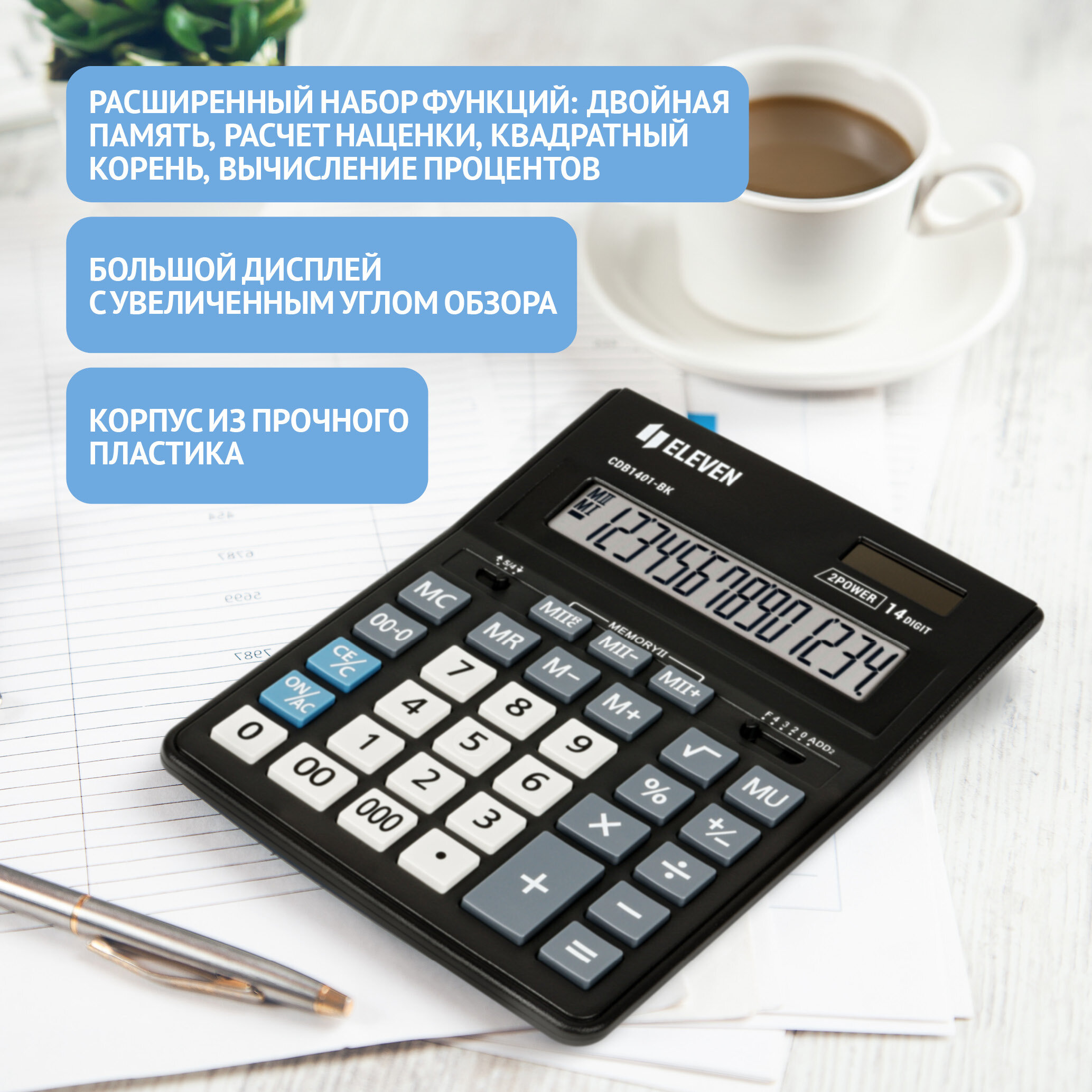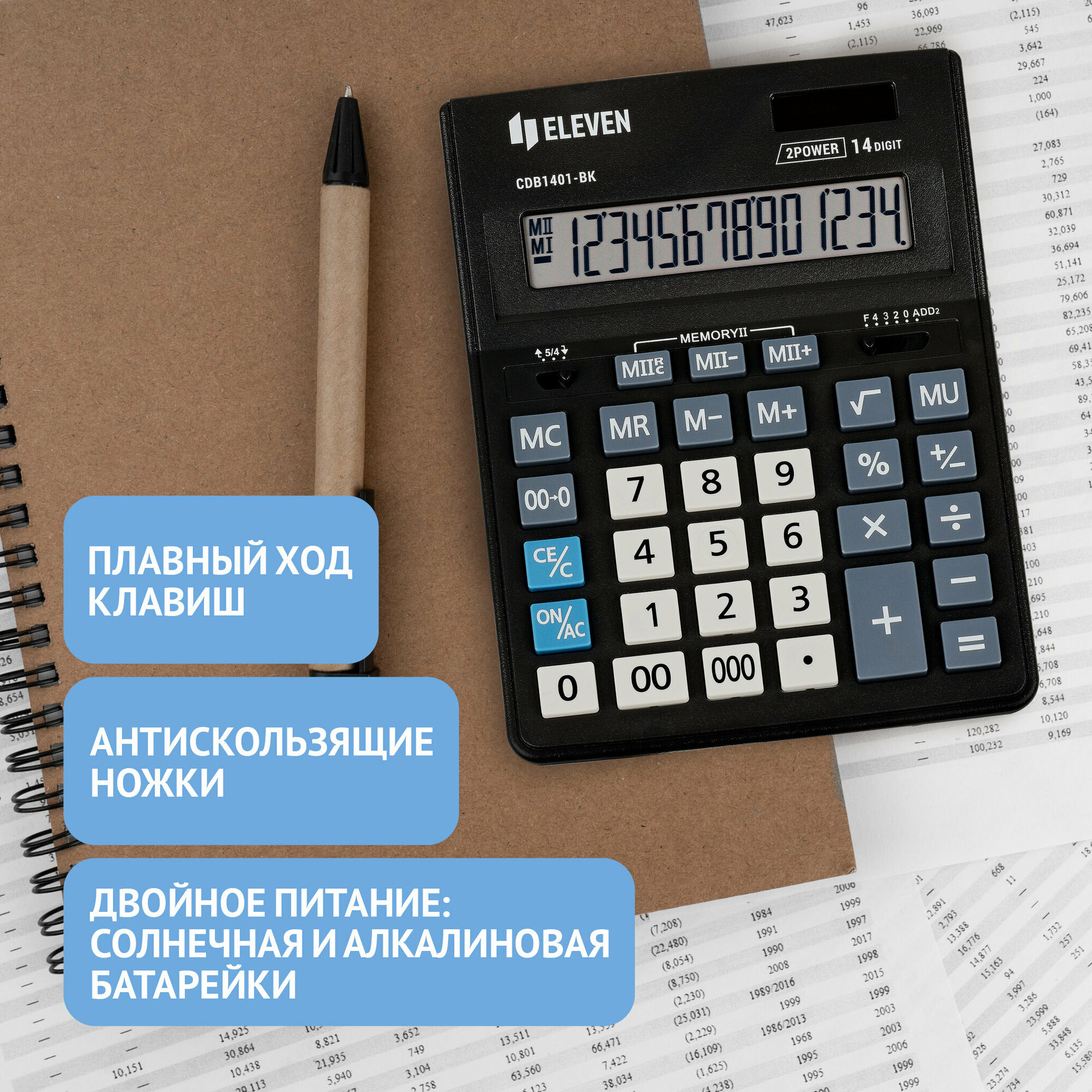 Калькулятор настольный для ЕГЭ непрограммируемый большой для школы Eleven Business Line CDB1401-BK для физики, бухгалтерский / 14 разрядов / черный