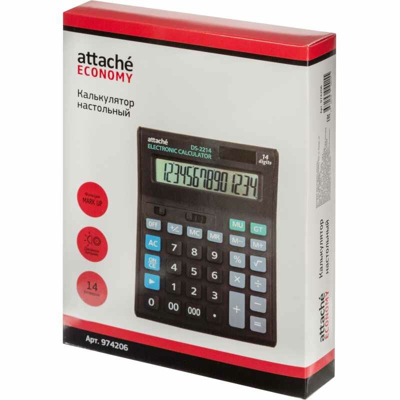 Attache Калькулятор полноразмерный настольный Economy 14 разр., чёрный 974206