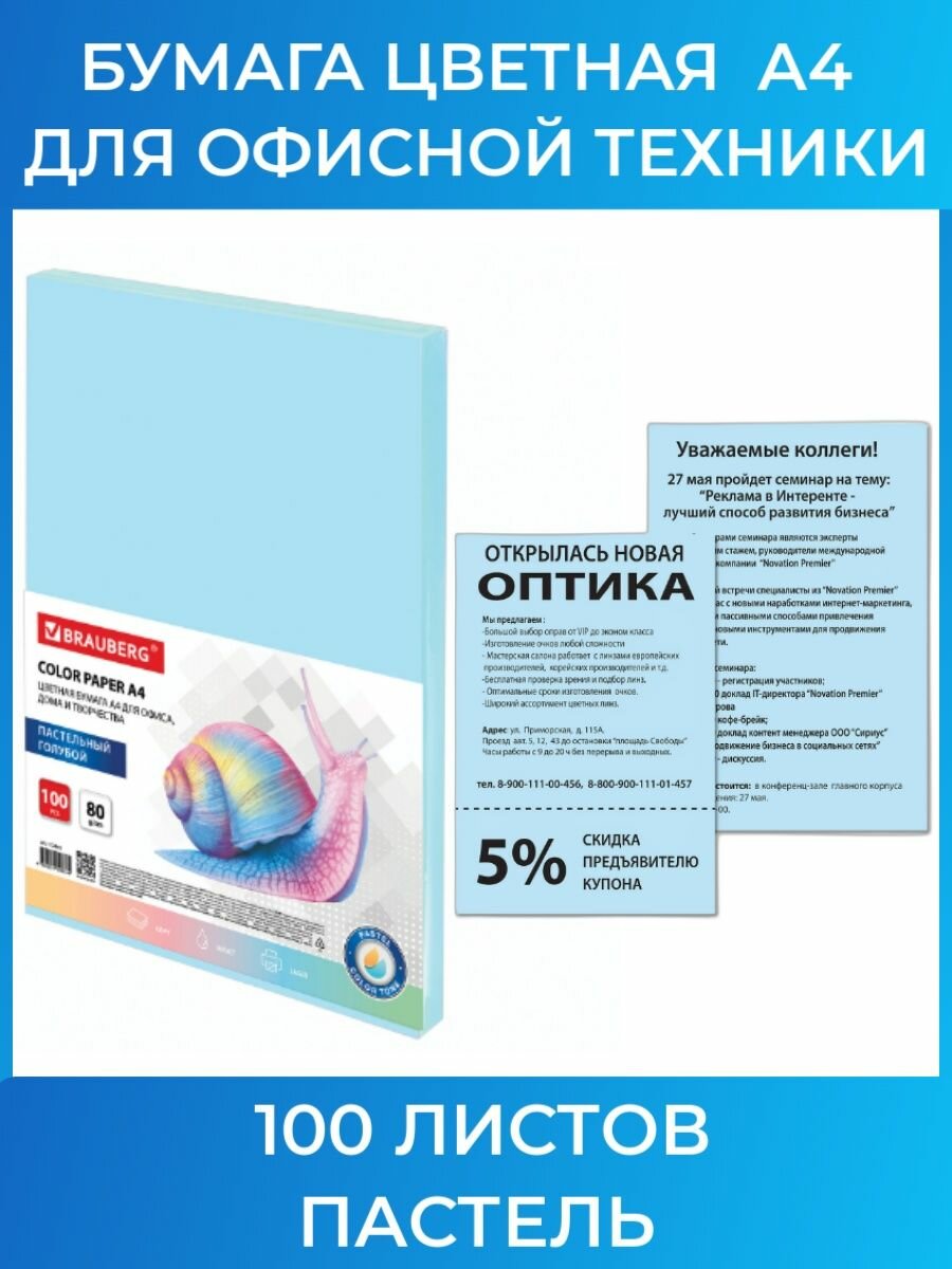 Ниже Вы можете прочитать отзывы на Бумага цветная BRAUBERG, А4, 80 г/м2, 100 л., пастель, голубая, для офисной техники, 112445, ознакомится с подробными характеристиками, посмотреть интересные обзоры и фотографии на Бумага цветная BRAUBERG, А4, 80 г/м2, 100 л., пастель, голубая, для офисной техники, 112445.