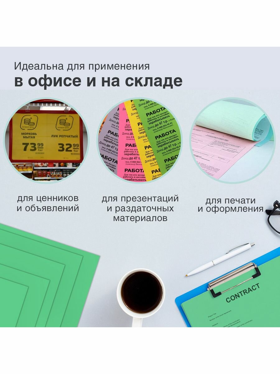 Бумага цветная для принтера офисная Brauberg, А4, 80 г/м2, 100 листов, интенсив, зеленая, для офисной техники, 112451
