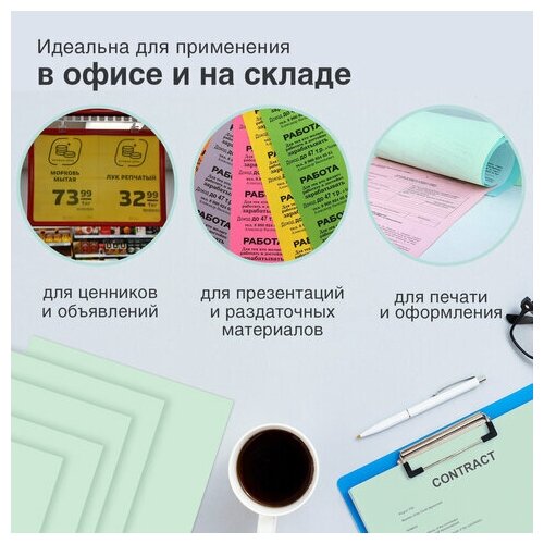 Бумага цветная для принтера офисная Brauberg, А4, 80 г/м2, 100 листов, пастель, зеленая, для офисной техники, 112444