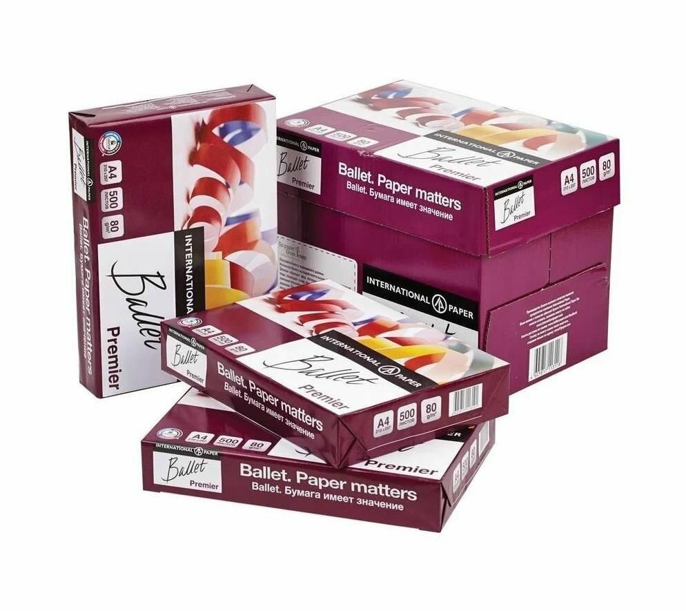 Бумага офисная BALLET PREMIER, А4, 80 г/м2, 500 л, марка А, ColorLok, International Paper, белизна 162%, 1 шт.