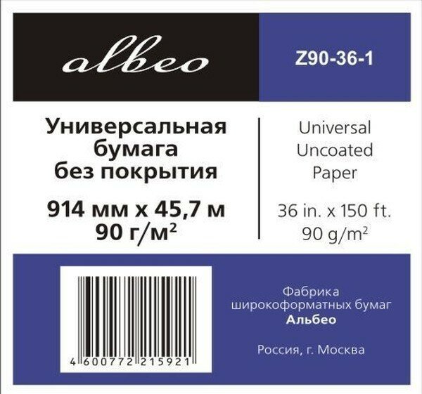 Купить Рулонная бумага для плоттеров Albeo Z90-36-1 (0, 914х45, 7 м. 90 г/кв.м.)