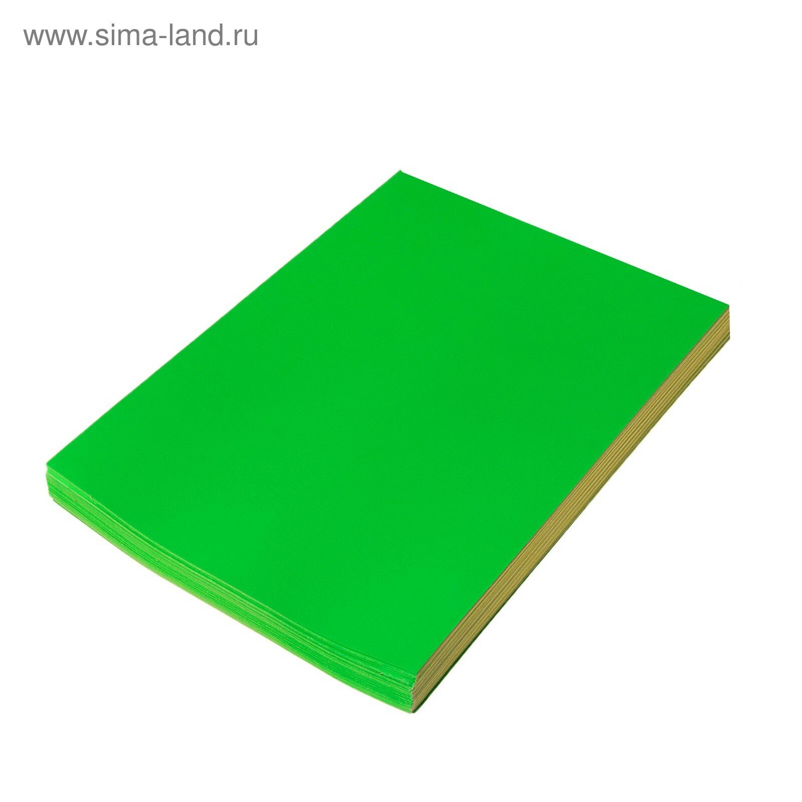 Бумага А4, 100 листов, 80 г/м, самоклеящаяся, флуоресцентный, ярко-зелёная