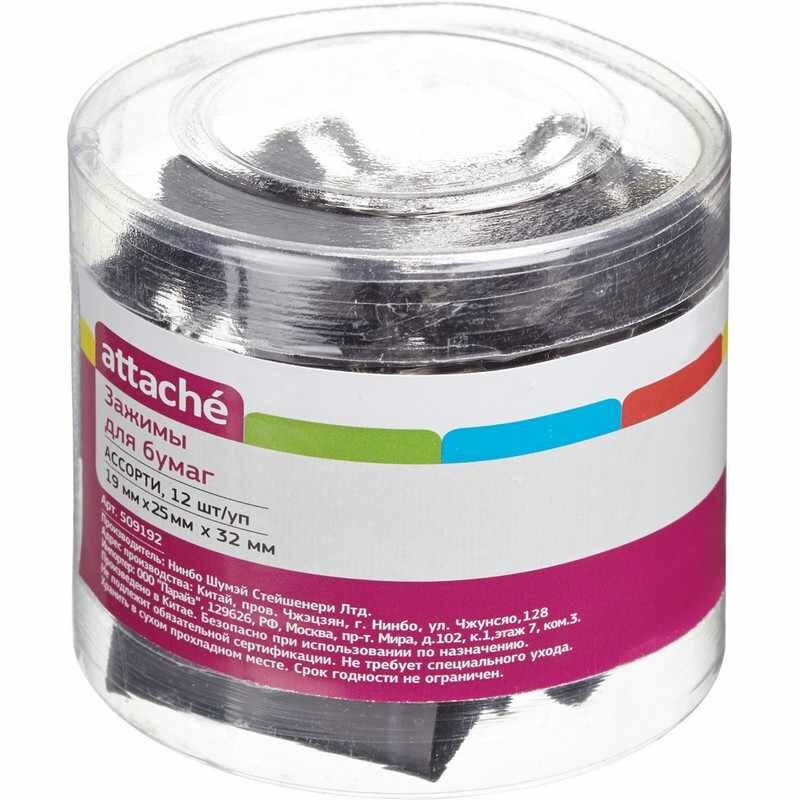Купить Зажимы для бумаг ассорти (19мм,25мм,32мм), 12шт/уп Attache, пласт.бокс