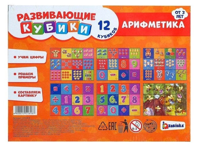 Ниже Вы можете прочитать отзывы на Кубики «Арифметика», 12 элементов, ознакомится с подробными характеристиками, посмотреть интересные обзоры и фотографии на Кубики «Арифметика», 12 элементов.