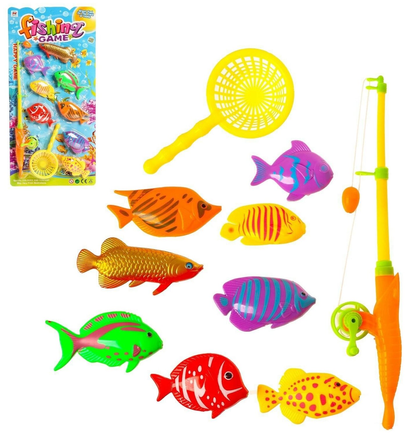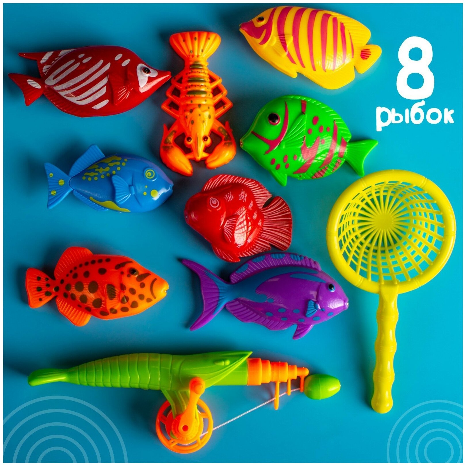 Рыбалка "Морская": 1 удочка, 8 рыбок, сачок, развивающий набор для детей и малышей интересное: