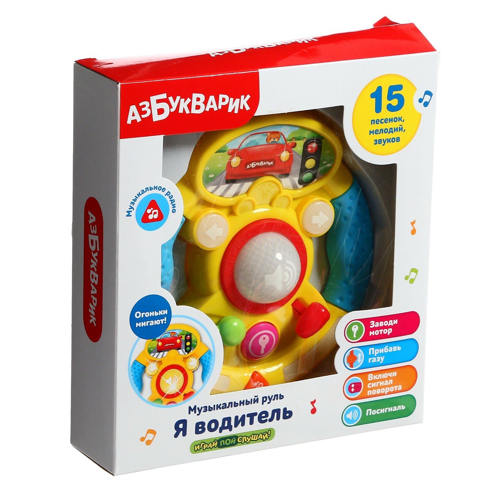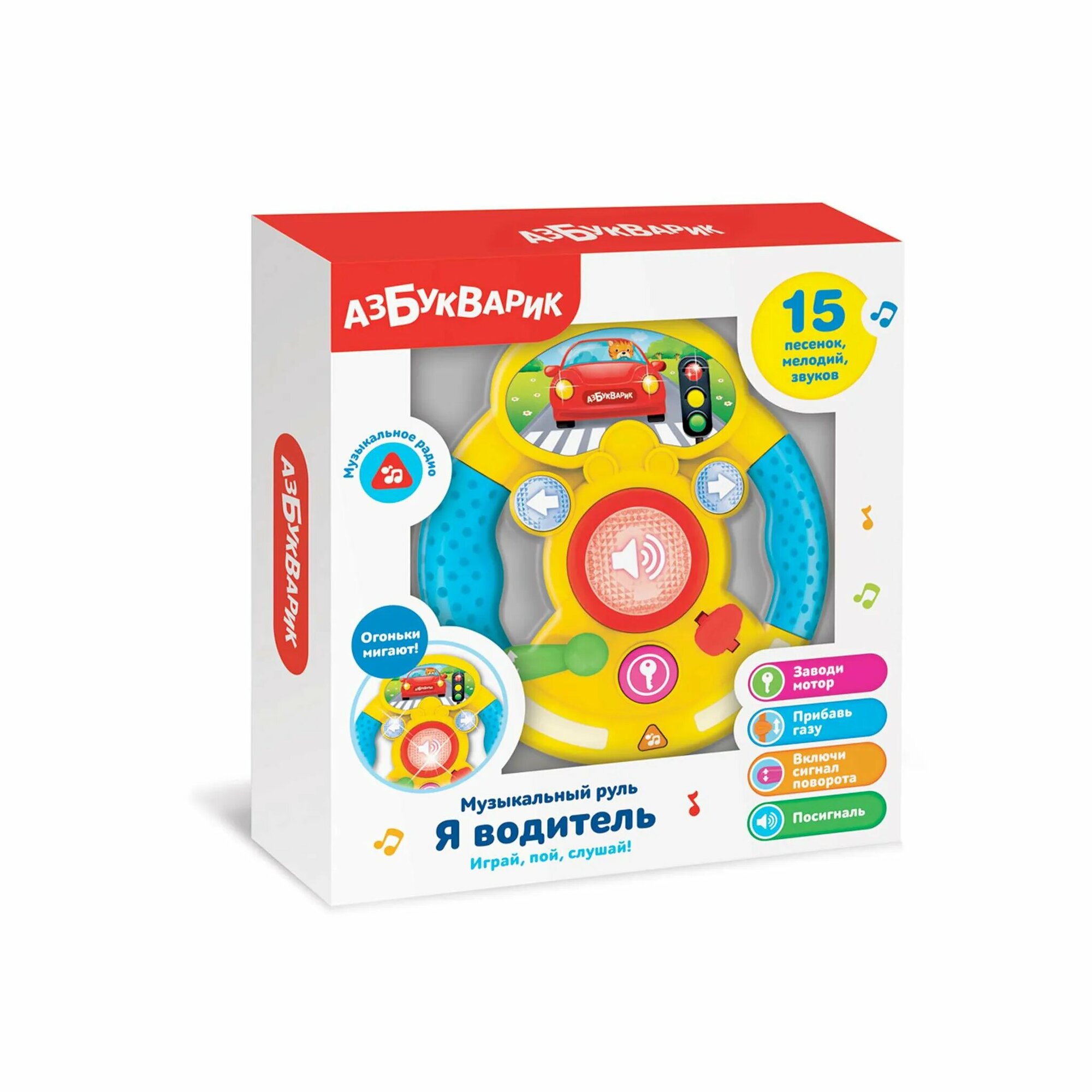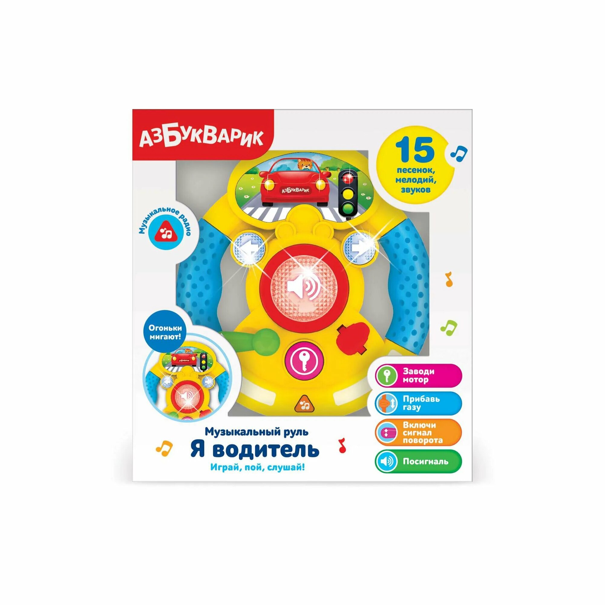 Интерактивная игрушка Азбукварик Музыкальный руль Я водитель Желтый 4630027292872 интересное: