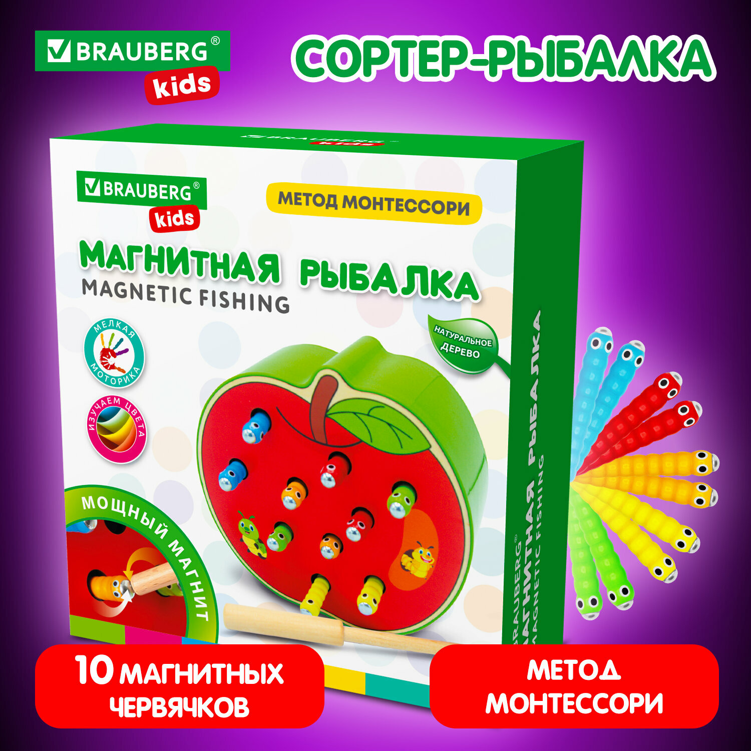 Сортер магнитный Brauberg рыбалка, деревянный, "Кот", развивающий, обучающий