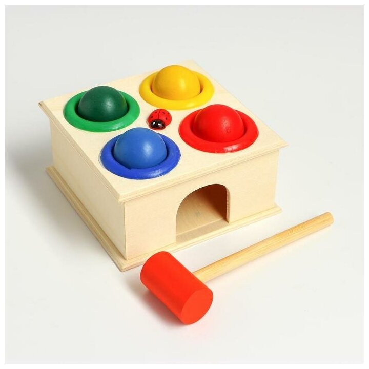 Купить Стучалка квадратная "Божья коровка" 4 шарика: 3 см, молоточек