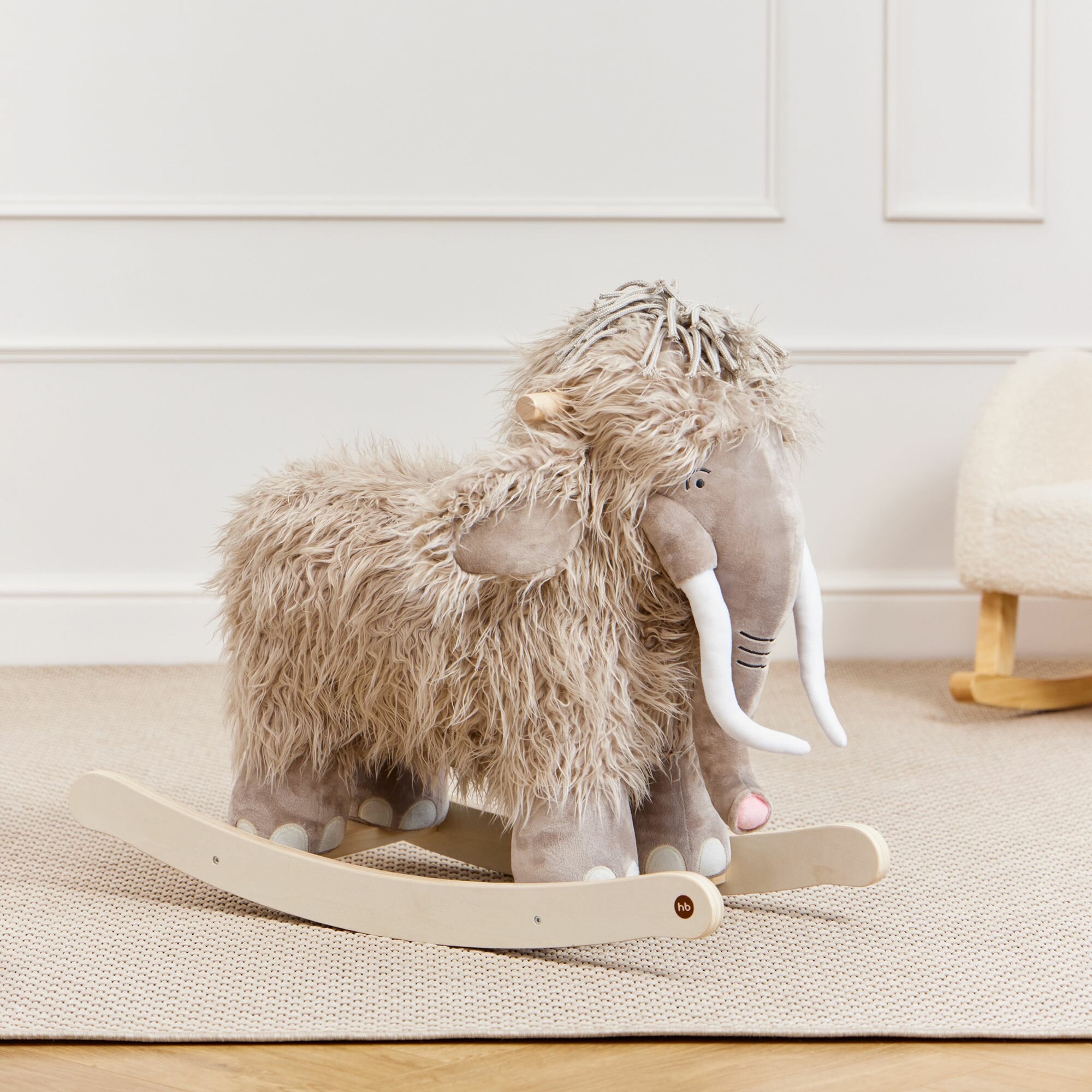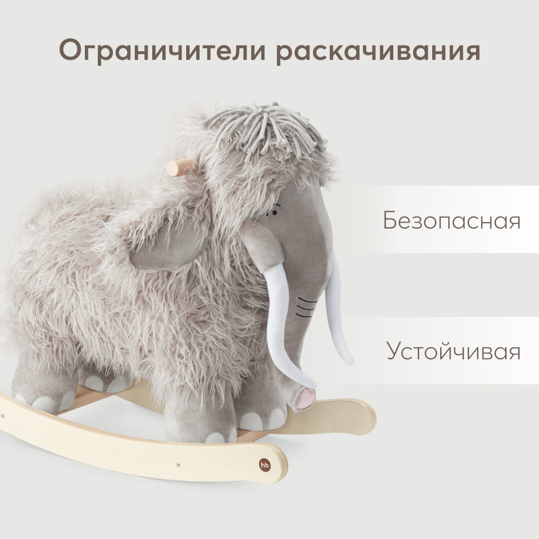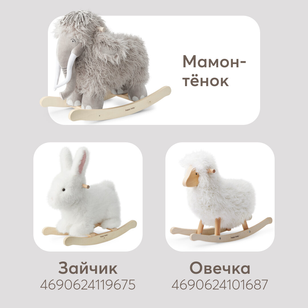 91035, Качалка детская Happy Baby Manny, качалка для малышей из натурального дерева, мамонтёнок мэнни интересное: