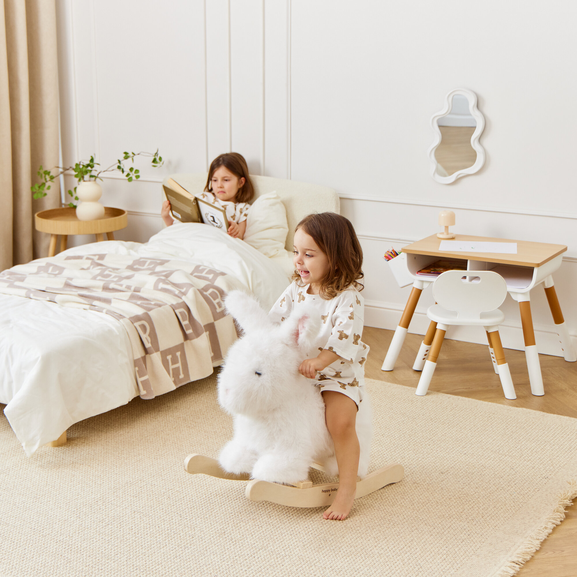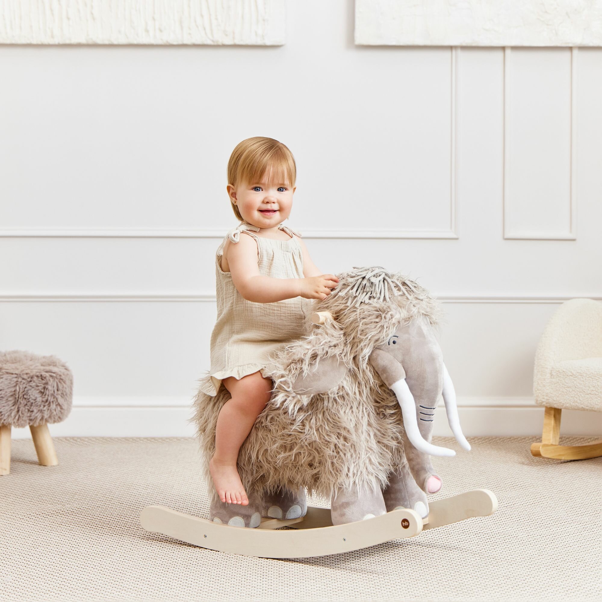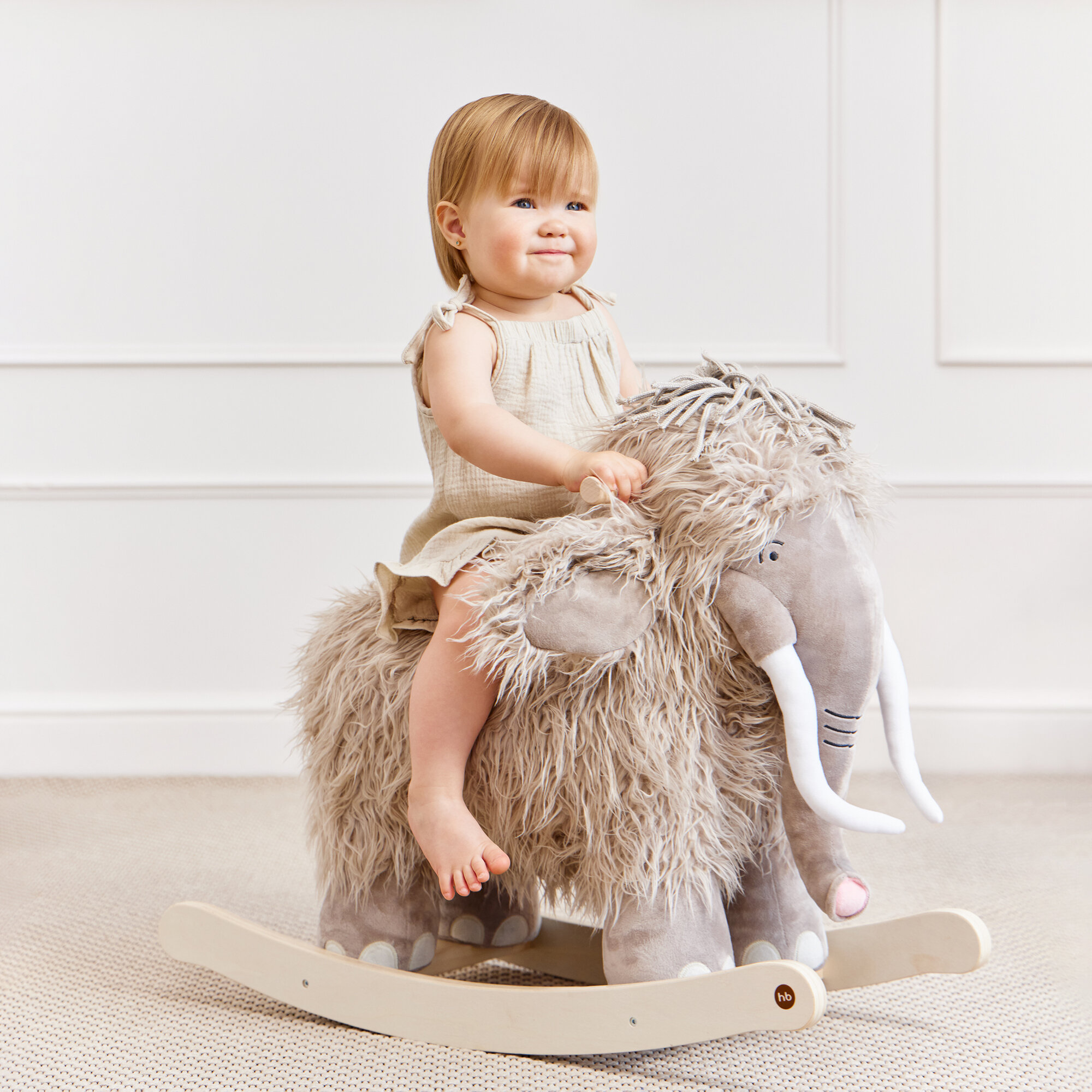 91035, Качалка детская Happy Baby Manny, качалка для малышей из натурального дерева, мамонтёнок мэнни интересное: