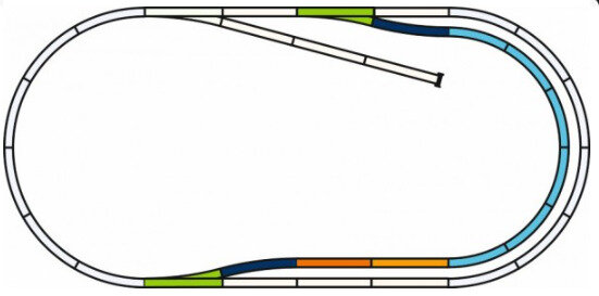 | Комплектация | состоит из радиусных рельс R1 x 6, R9 x 2, прямых рельс G239 x 1, G231 x 1, правой стрелки WR x 1, левой стрелки WL x 1 |