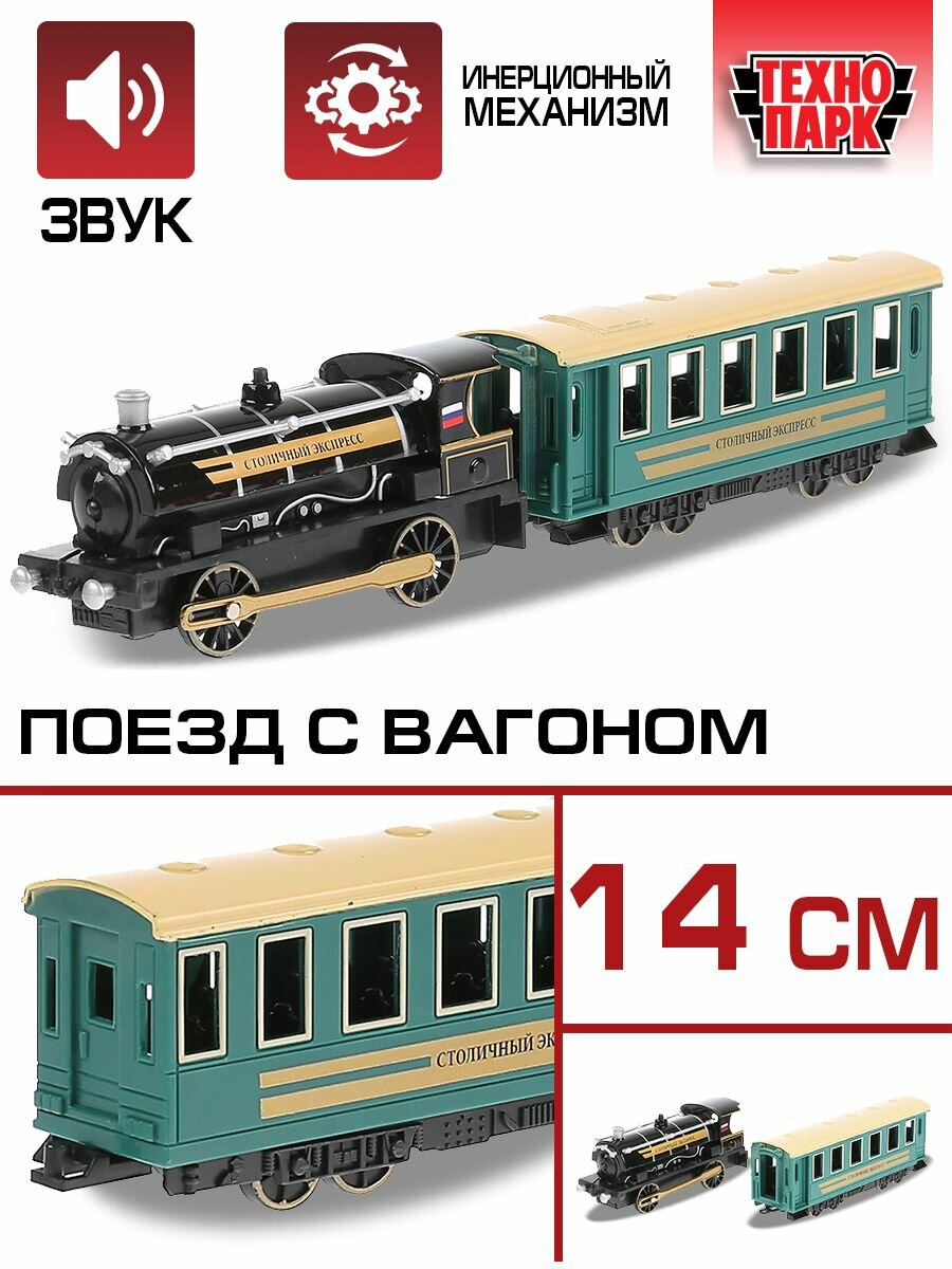 Купить Модель Инерционная Технопарк Паровоз с вагоном (металл, свет, звук, в коробке) CT10-038-BU-WB, (Huada Toy Co.,Ltd)