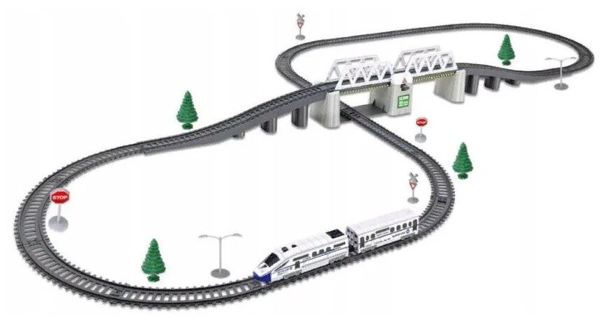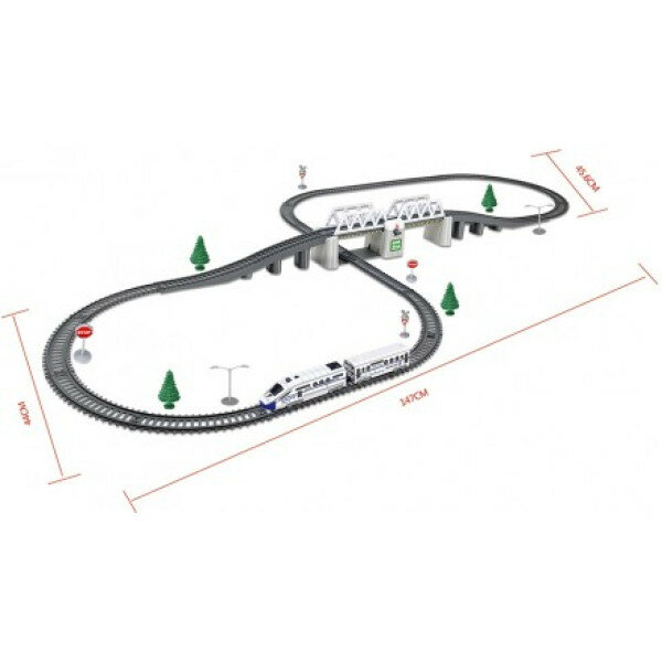Железная дорога детская со скоростным электропоездом и мостом, 2 состава, 366 см длина трассы, с подсветкой - BSQ-2184