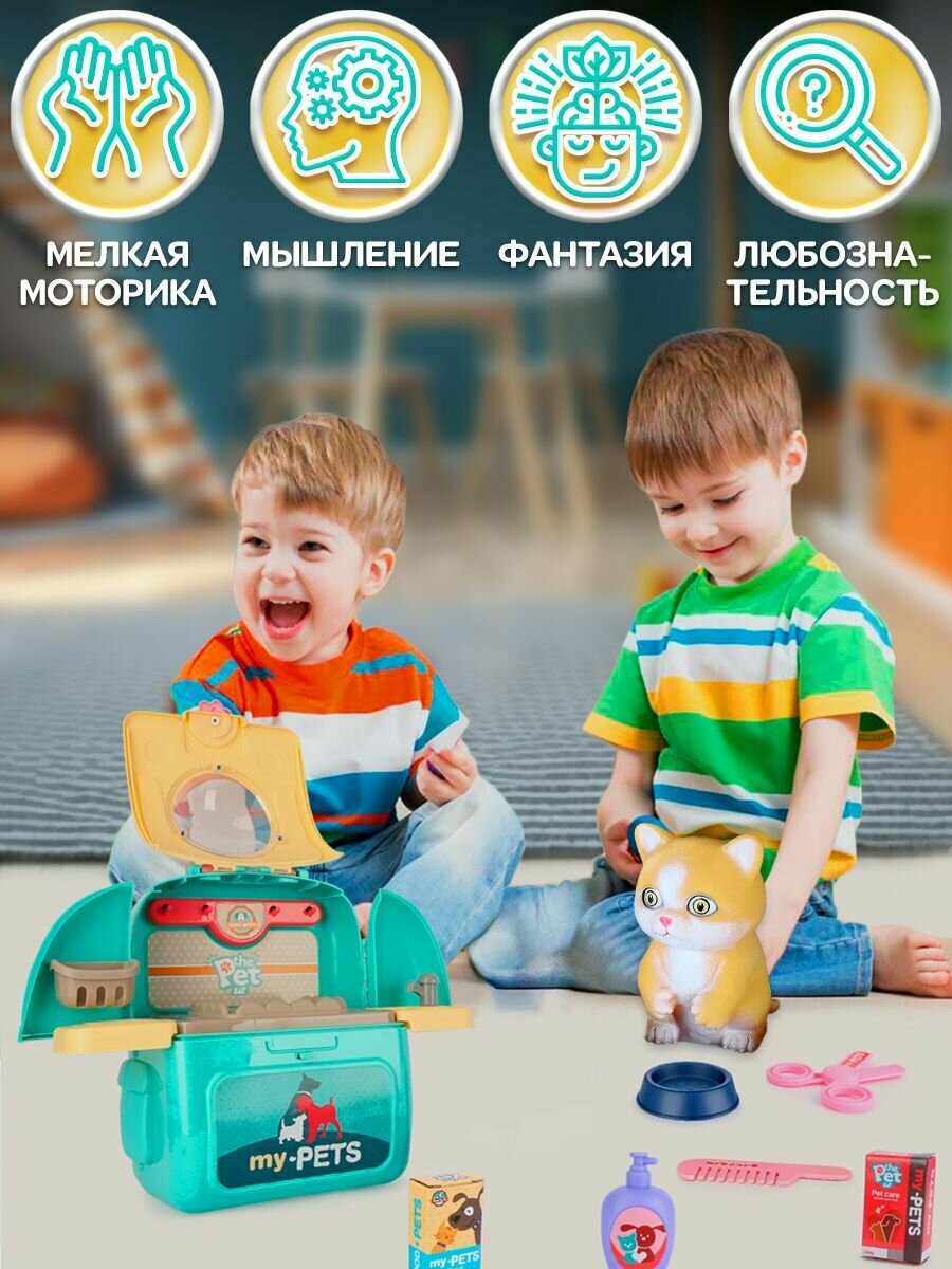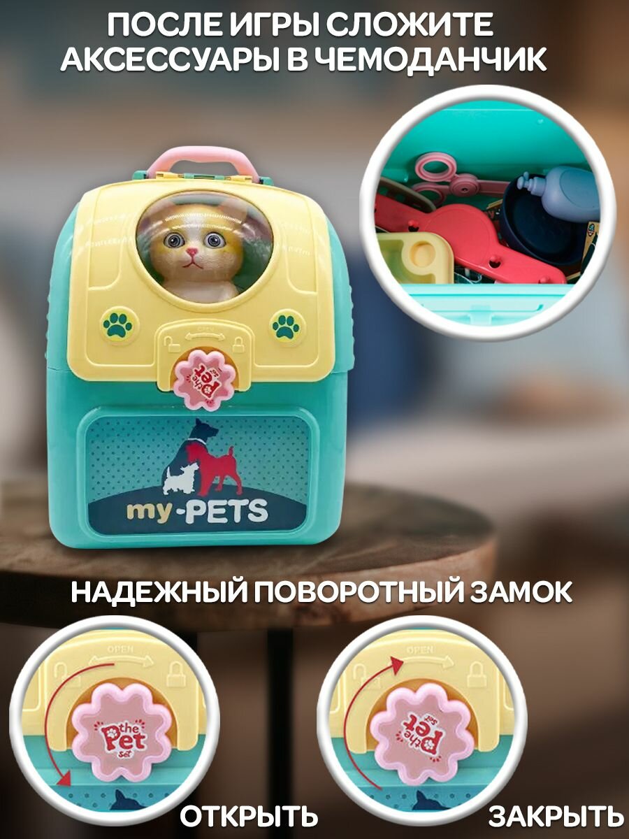 Питомец в переноске WiMi, игровой набор ветеринар и игрушка котик с аксессуарами интересное:
