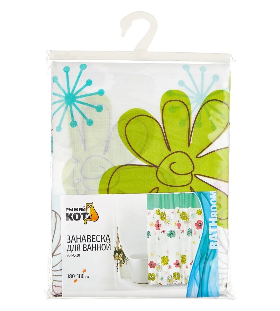 Штора для ванной Рыжий кот SC-PE-28, 180 x 180 см, полиэстер