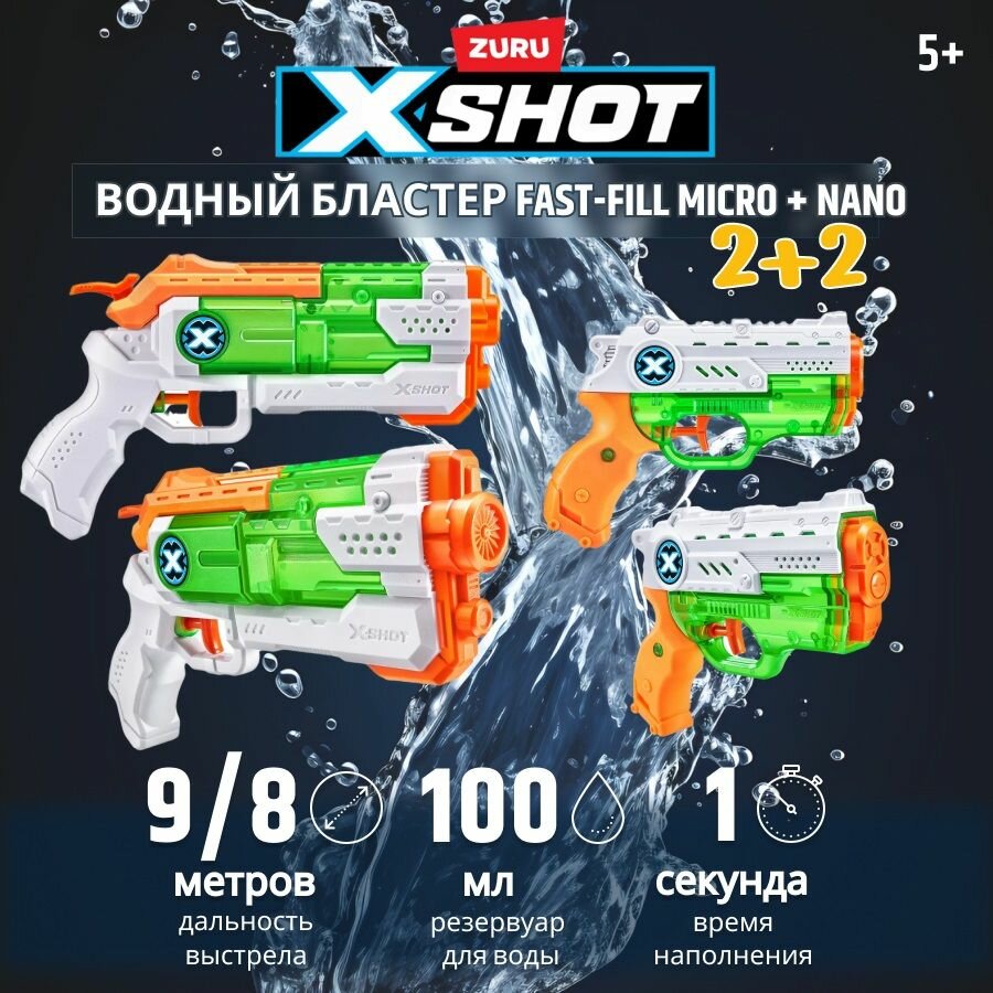 Купить Водные бластеры ZURU X-SHOT WATER FAST-FILL Micro 2шт. + Nano 2 шт. 11856