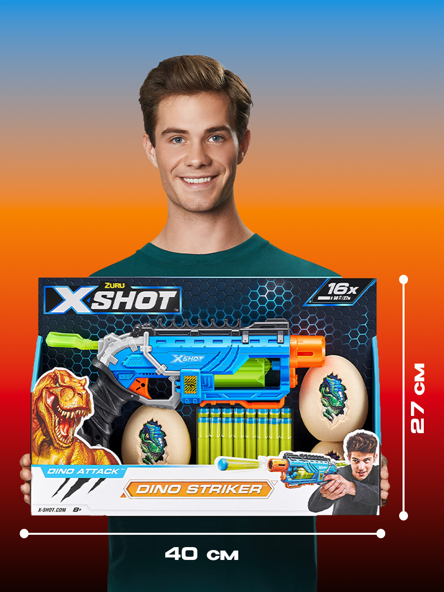 Игровой набор с бластером ZURU X-SHOT Dino Striker с 16 стрелами и 6 мишенями в виде яиц, игрушки для мальчиков, 8+, 4860
