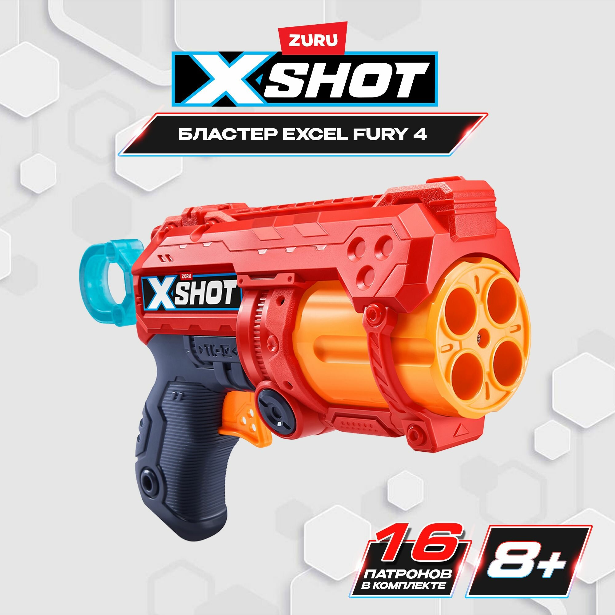 Купить Пистолет с мягкими дротиками в комплекте (16 шт.) ZURU X-Shot Excel Fury 4, игрушечное оружие, игрушка для мальчика, подходят стрелы нерф, 36377