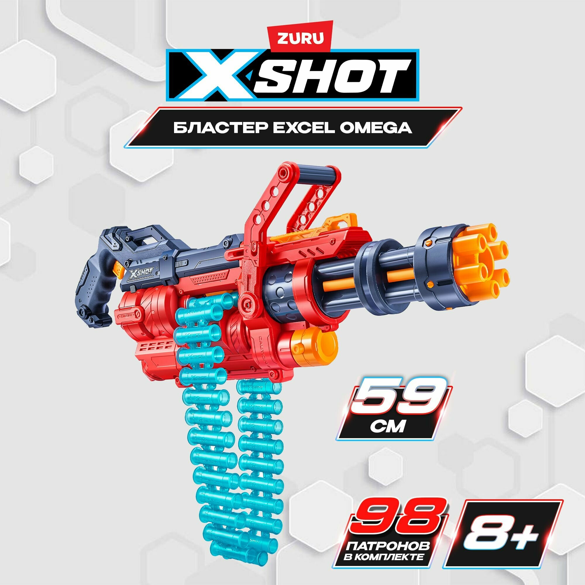 Купить Большой автомат с мягкими пулями в комплекте (98 шт.) ZURU X-SHOT Эксель Омега, игрушечное оружие, игрушка для мальчика, подходят стрелы нерф, 36430