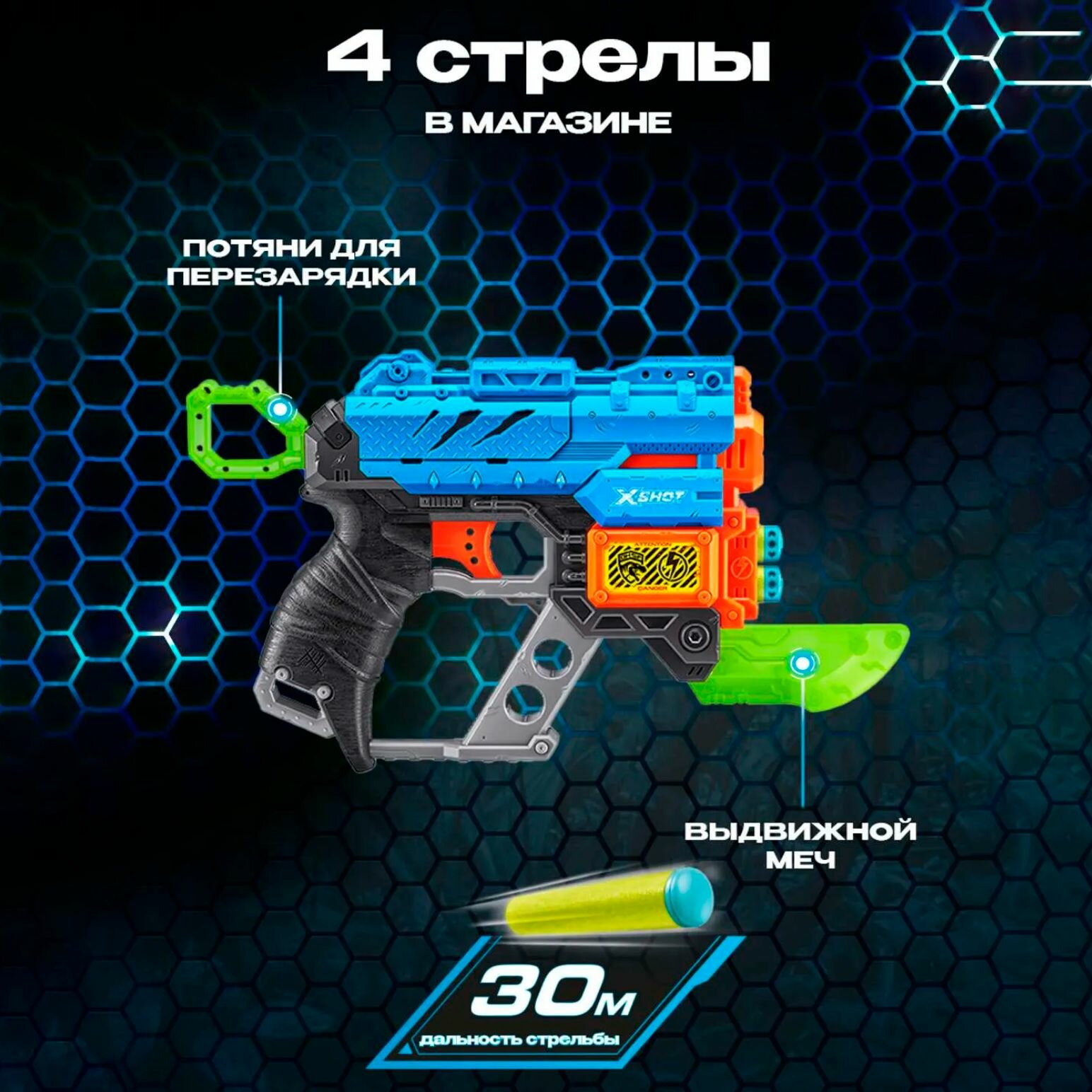 Пистолет с мягкими дротиками в комплекте (16 шт.) ZURU X-Shot Excel Fury 4, игрушечное оружие, игрушка для мальчика, подходят стрелы нерф, 36377