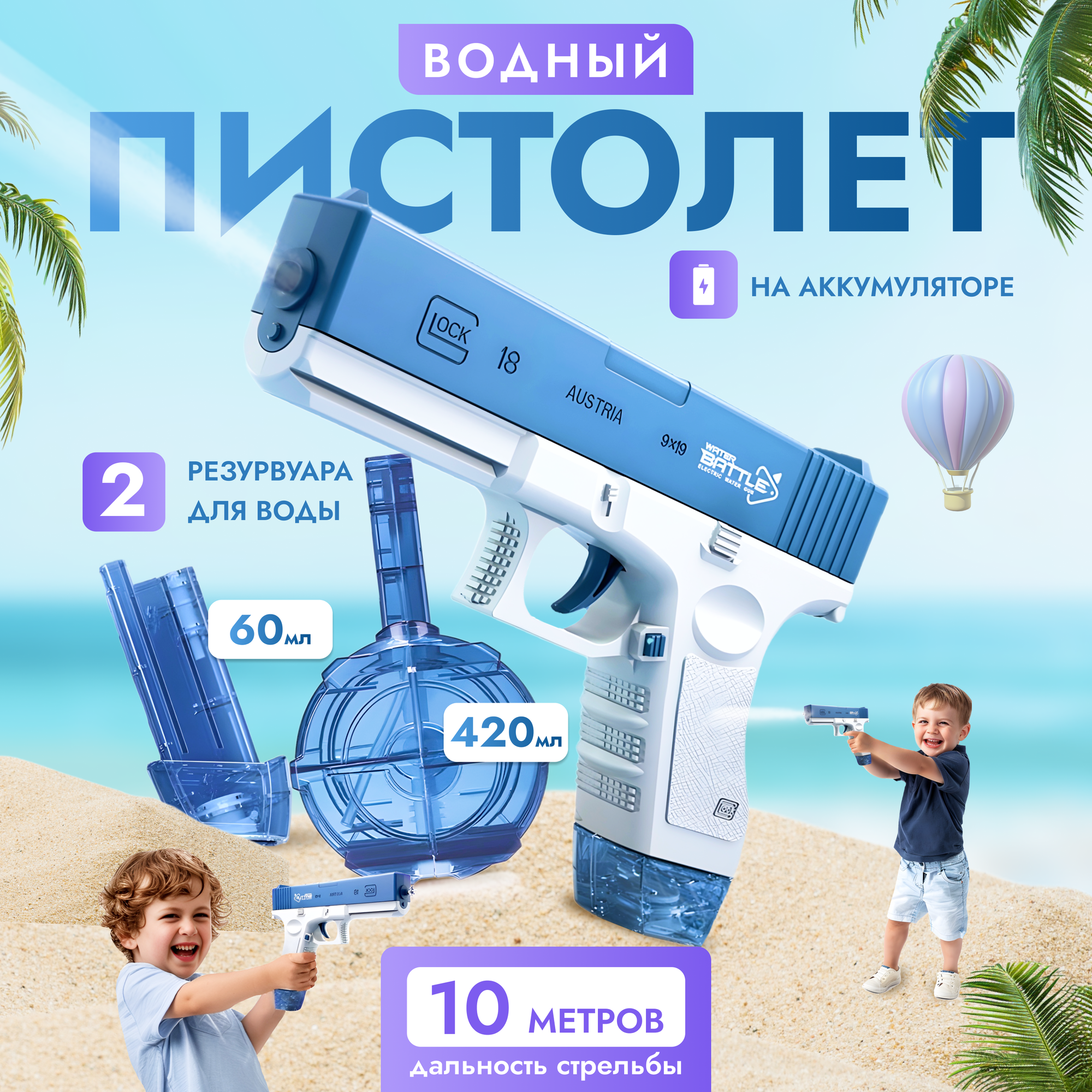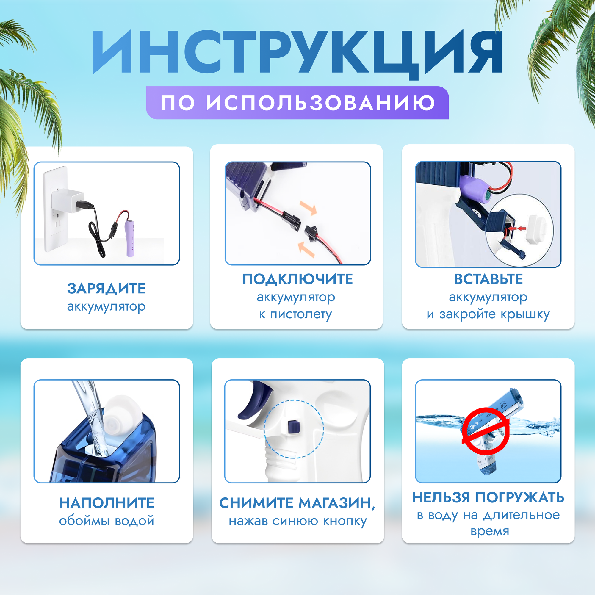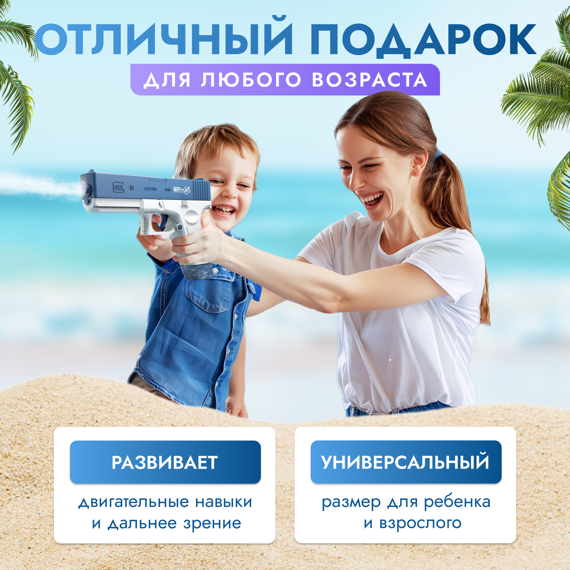 Водный пистолет детский электрический с двумя емкостями 60мл и 420мл синий интересное: