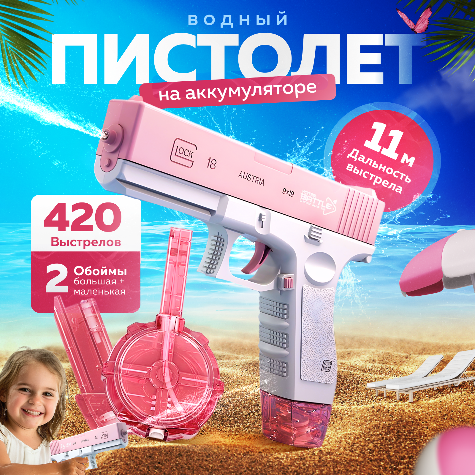 Водный пистолет электрический розовый с двумя резервуарами интересное: