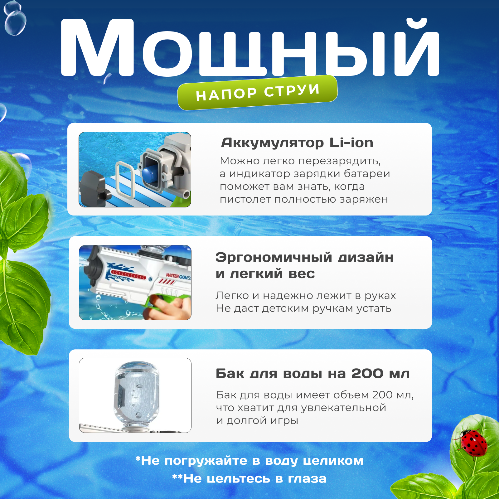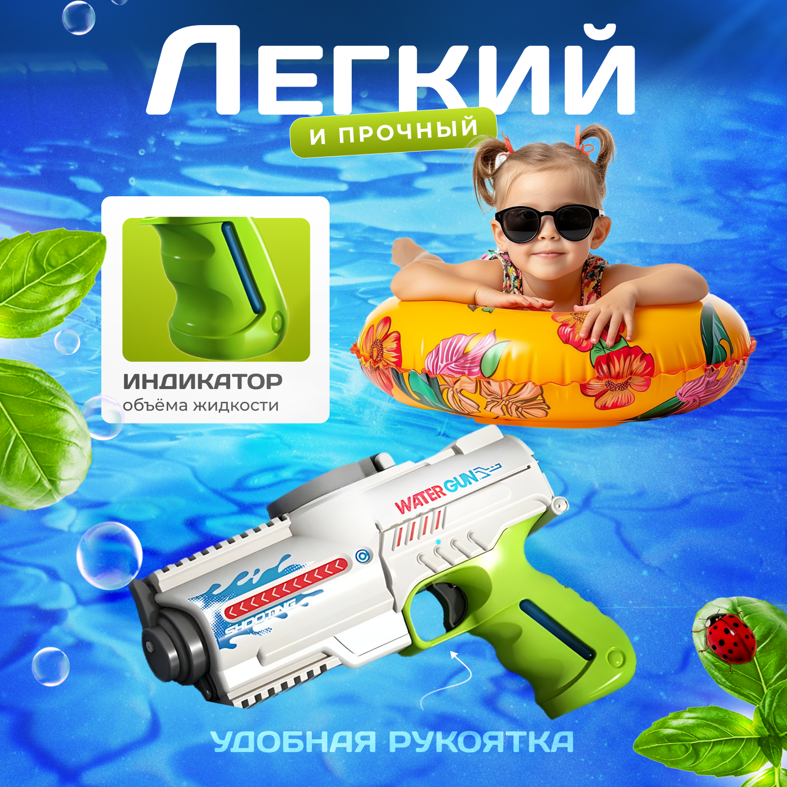 Водный пистолет детский электрический зеленый с магазином 200 мл интересное: