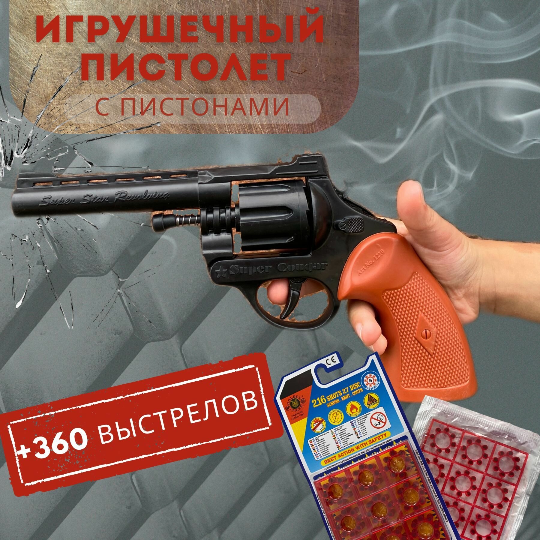 Пистолет пугач с пистонами + 360 выстрелов. интересное: