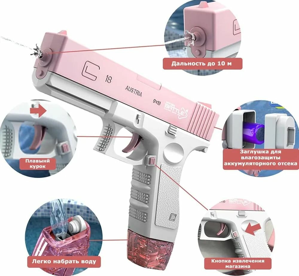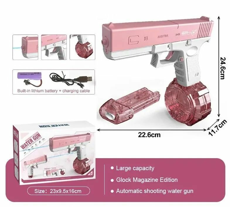 Ниже Вы можете прочитать отзывы на Водный электрический пистолет GLOCK глок на аккумуляторе\Мощная новинка 3 поколения, автоматическая стрельба\2 магазина, обоймы в комплекте\Розовый, ознакомится с подробными характеристиками, посмотреть интересные обзоры и фотографии на Водный электрический пистолет GLOCK глок на аккумуляторе\Мощная новинка 3 поколения, автоматическая стрельба\2 магазина, обоймы в комплекте\Розовый.