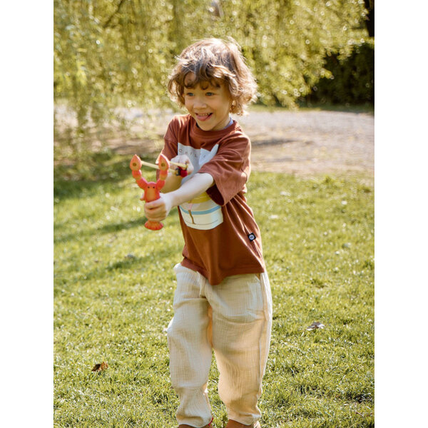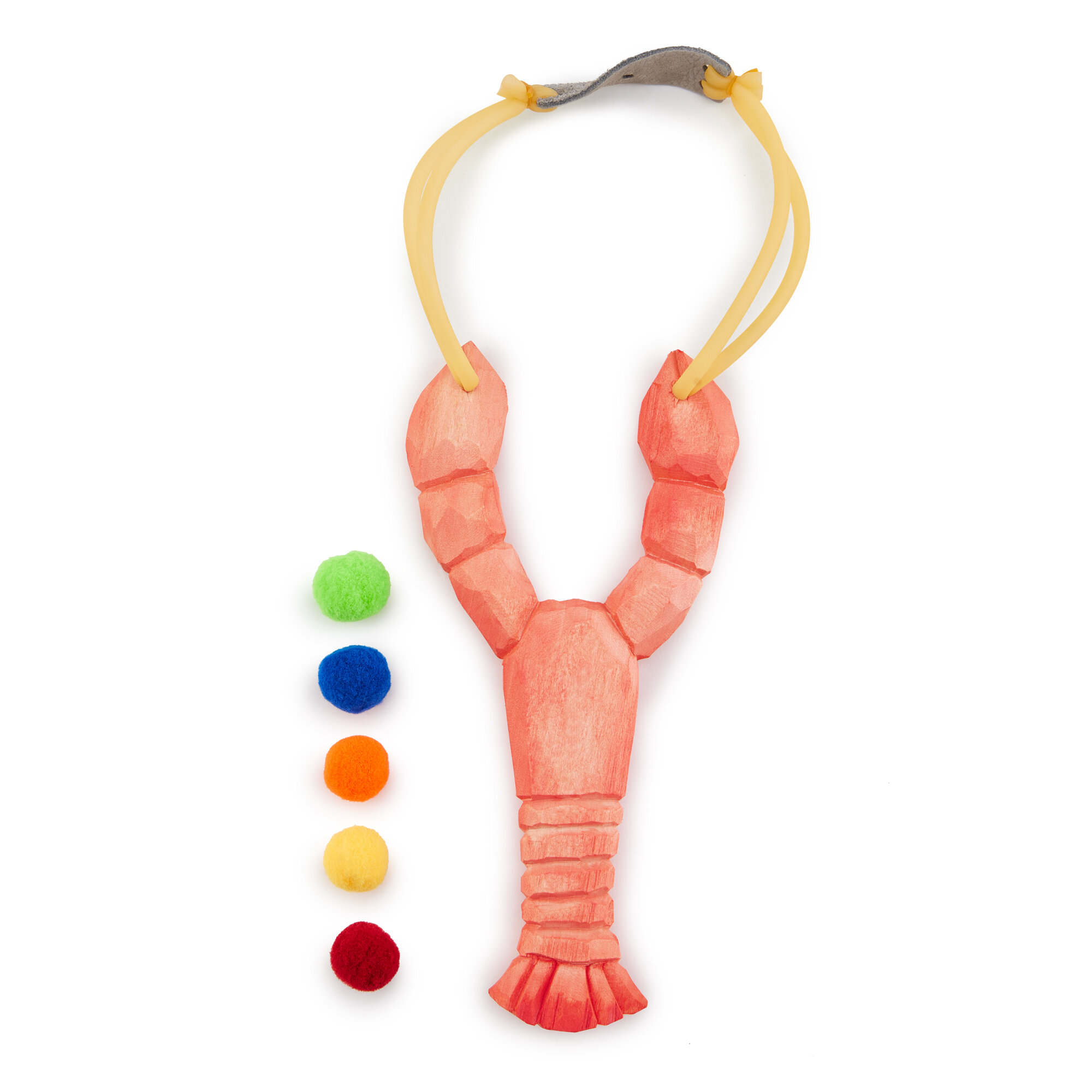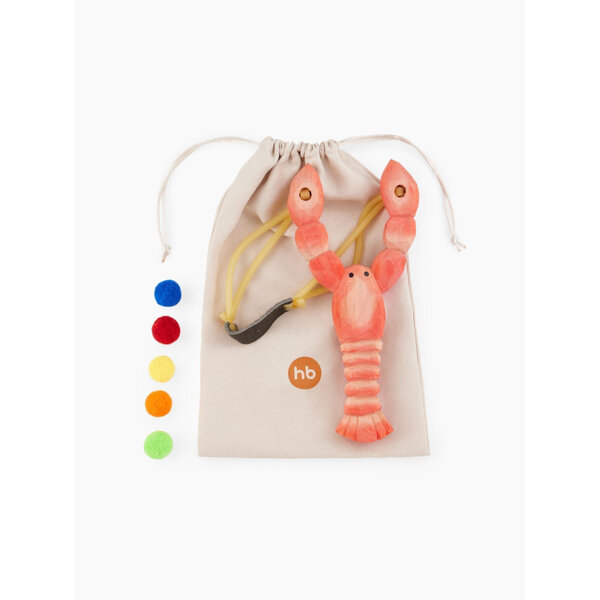 331910, Рогатка детская деревянная Happy Baby игрушечное оружие, со снарядами, лобстер, розовая интересное: