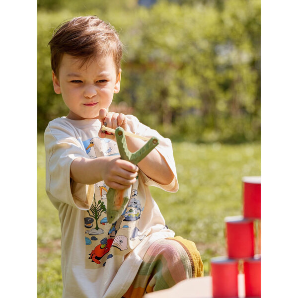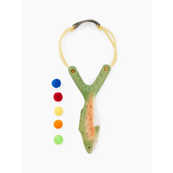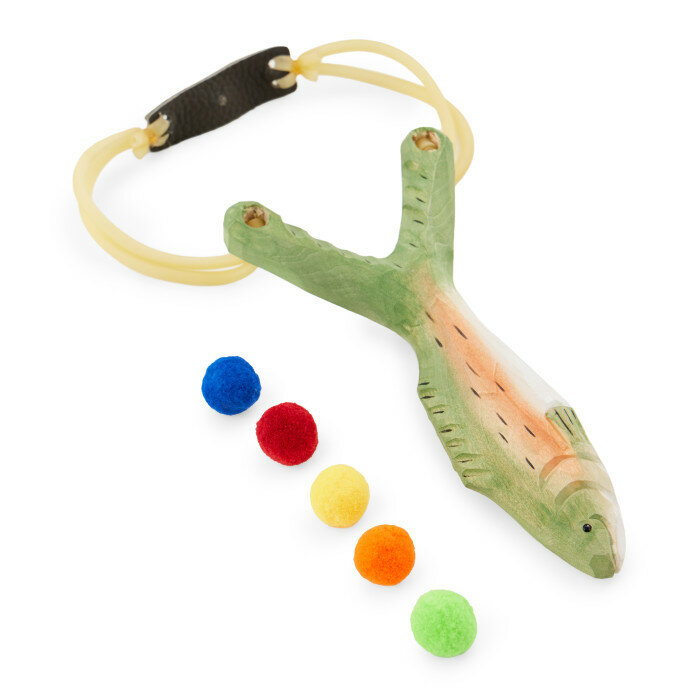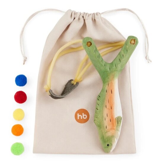 Купить 331910, Рогатка детская деревянная Happy Baby игрушечное оружие, со снарядами, рыбка, зеленая