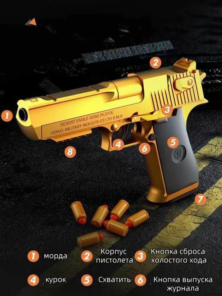 Ниже Вы можете прочитать отзывы на Пистолет игрушечный черно-золотой детский с пульками Desert Eagle. Детская игрушка для мальчиков (+ дополнительные патроны), ознакомится с подробными характеристиками, посмотреть интересные обзоры и фотографии на Пистолет игрушечный черно-золотой детский с пульками Desert Eagle. Детская игрушка для мальчиков (+ дополнительные патроны).