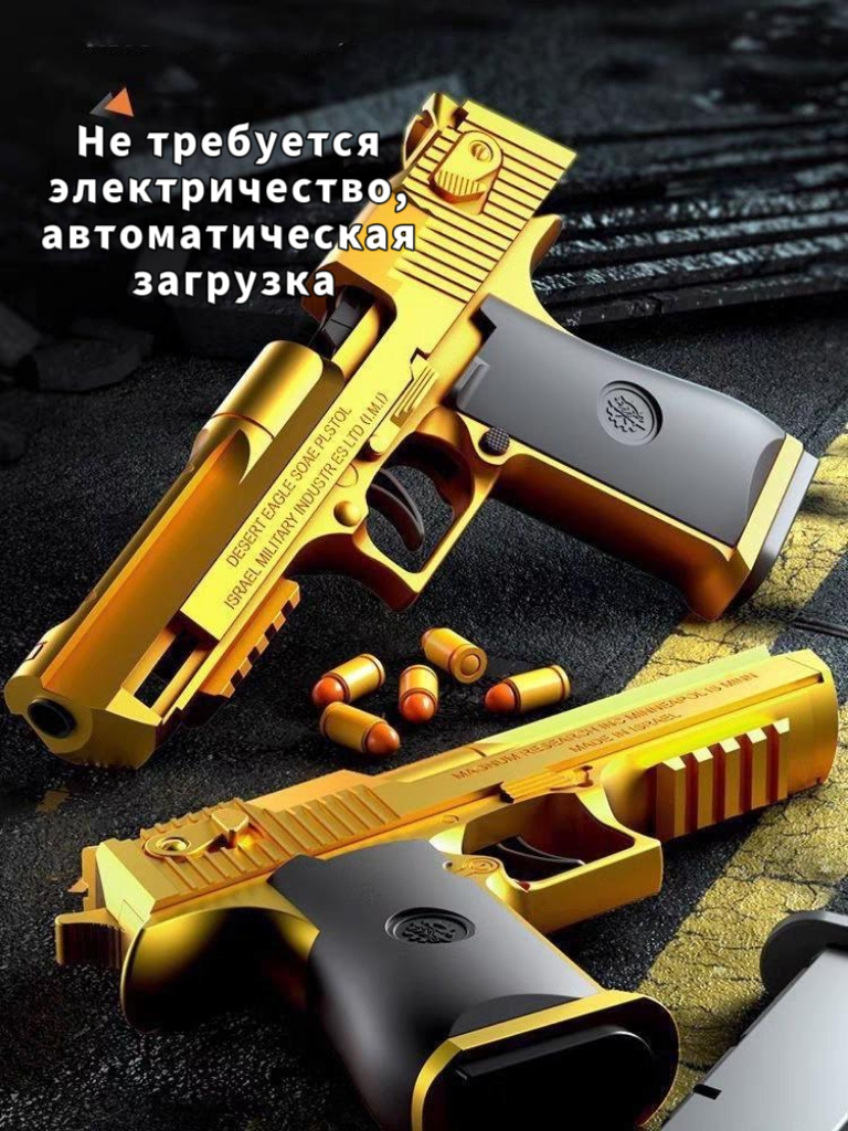 Купить Пистолет игрушечный черно-золотой детский с пульками Desert Eagle. Детская игрушка для мальчиков (+ дополнительные патроны)