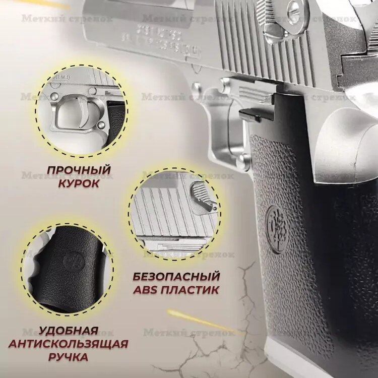 Купить Пистолет игрушечный черно-серый детский с пульками Desert Eagle. Детская игрушка для мальчиков (+ дополнительные патроны)