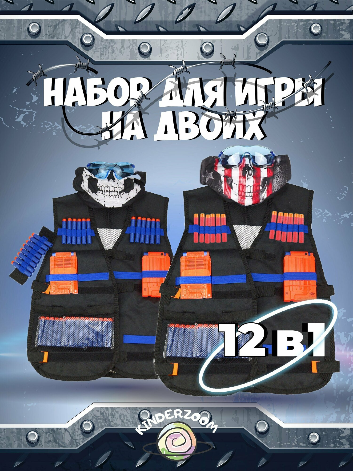 Жилет защитный 12в1 (на два игрока)/ Набор для игры в Nerf/Нерф интересное: