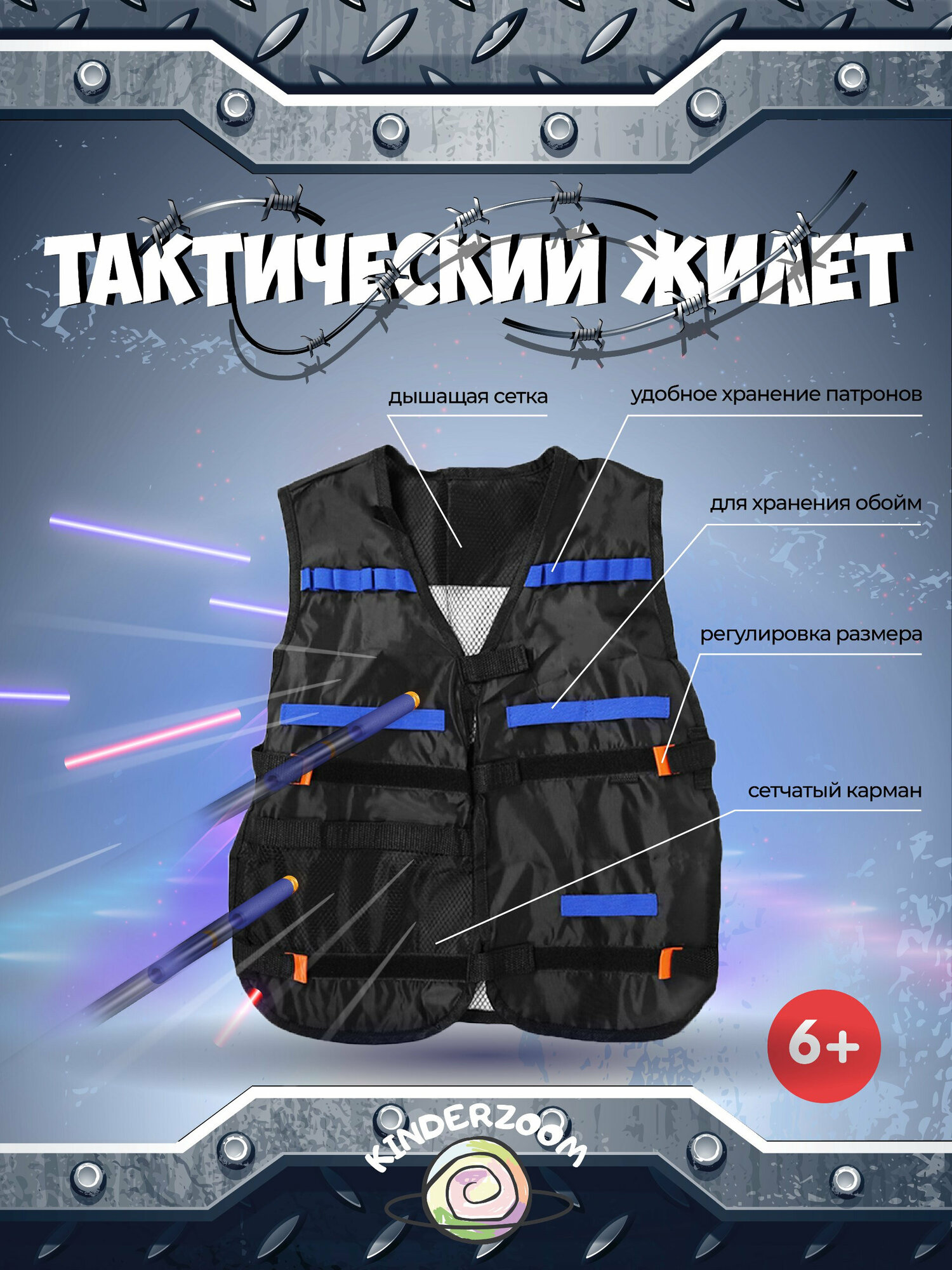 Жилет защитный 6в1/ Набор для игры в Nerf/Нерф (темный)