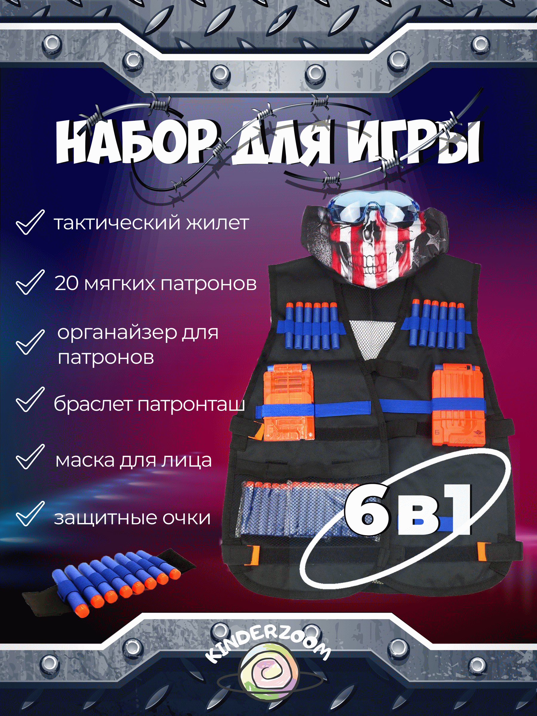 Жилет защитный 6в1/ Набор для игры в Nerf/Нерф (красный) интересное: